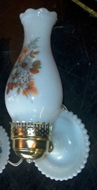 White porcelain chimney painted with flowers on a brass with a white porcelain mounting plate