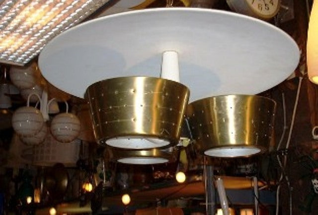 Vintage ceiling pendant Brass Dome with three perforated brass shade