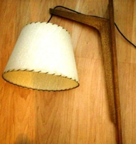 Vintage Danish Teak wall mount bracket 1950's with fiberglass shade with Lacing
