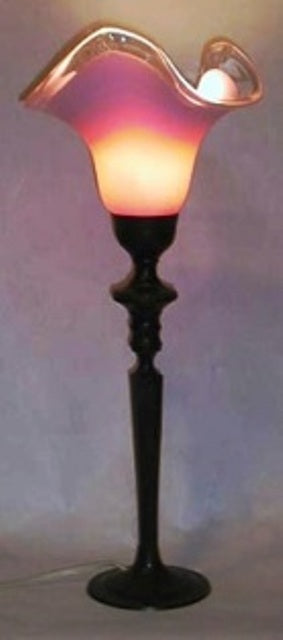 Vintage Table lamp Bronze finish over cast metal with Hand Blown pink Glass shade