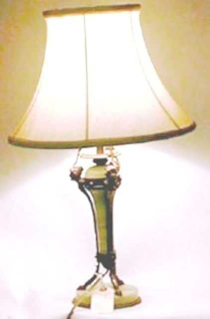 Vintage Table lamp alabaster with Glod accent and linen shade
