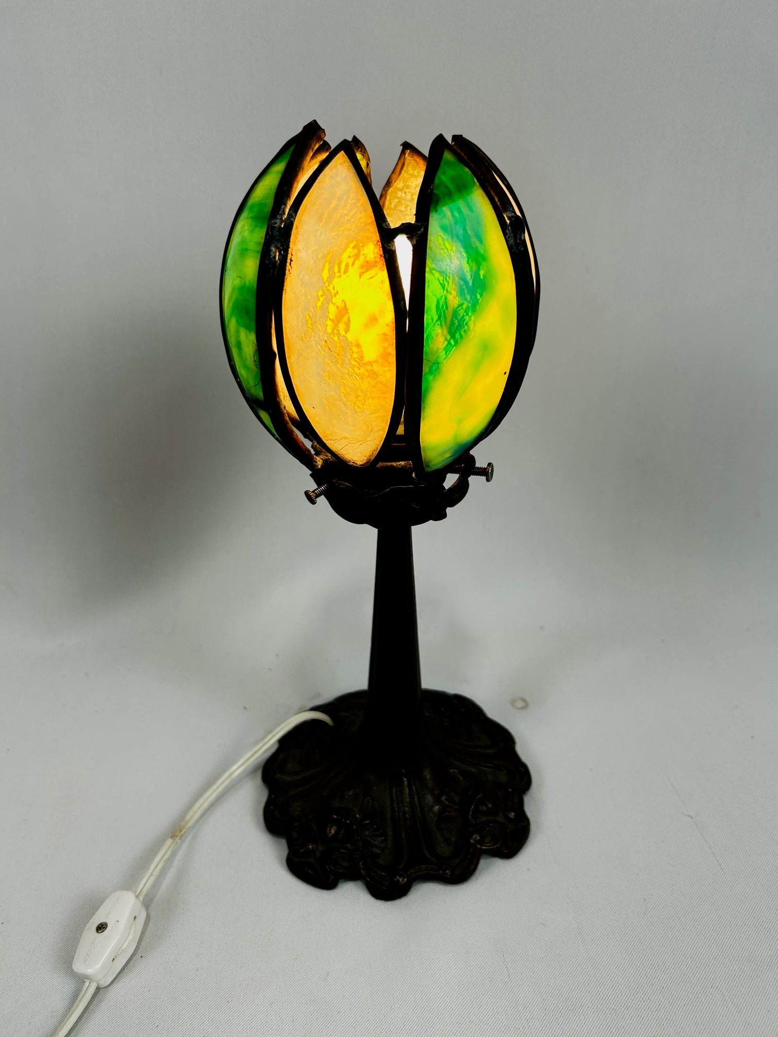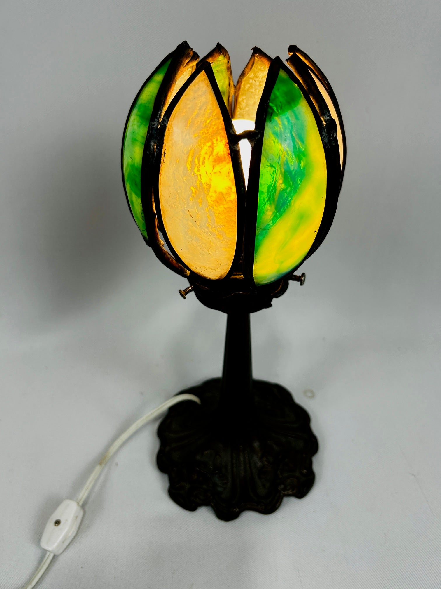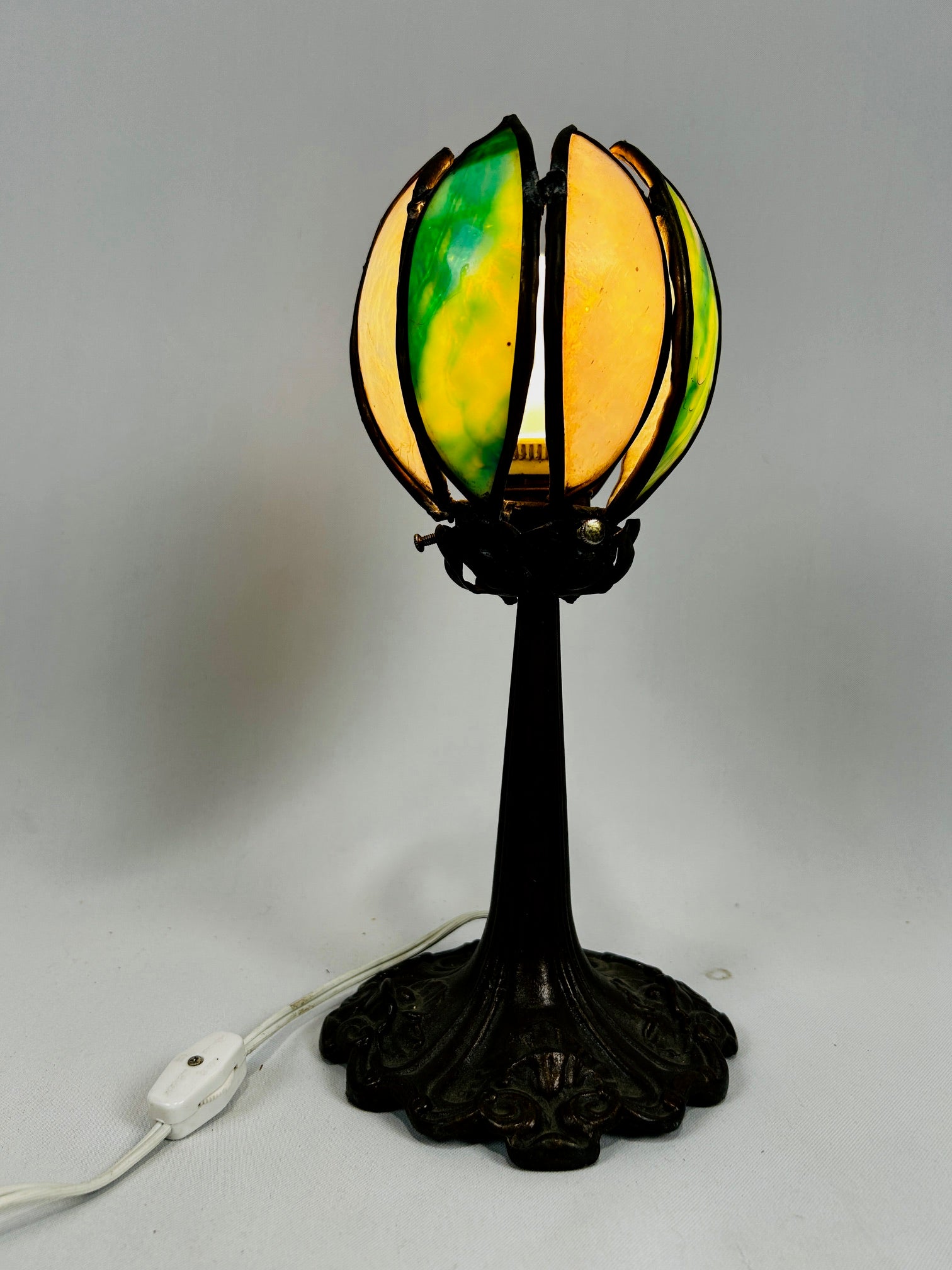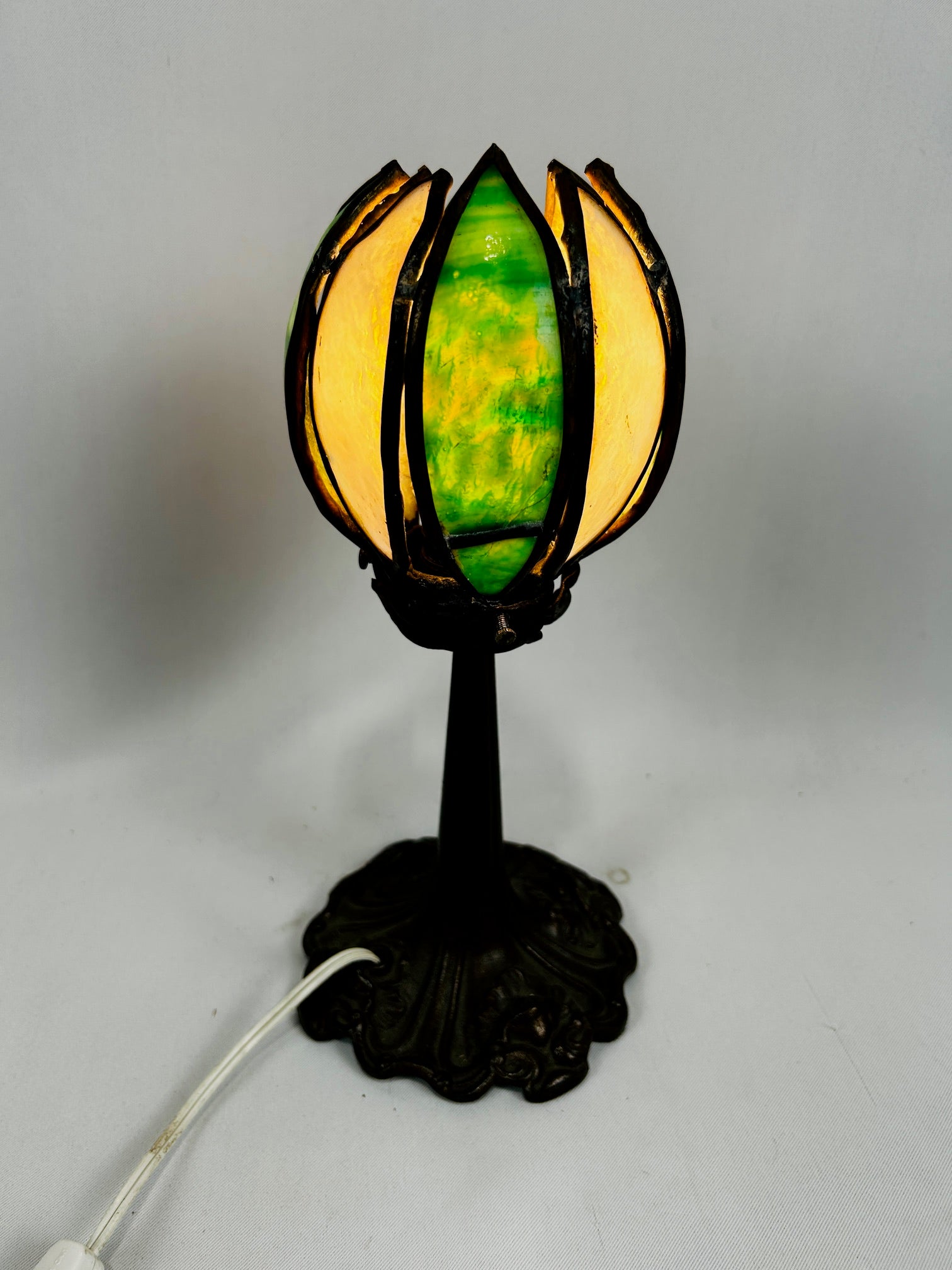 Table lamp Bronze finish with Stained glass Tulip (Handel) shade