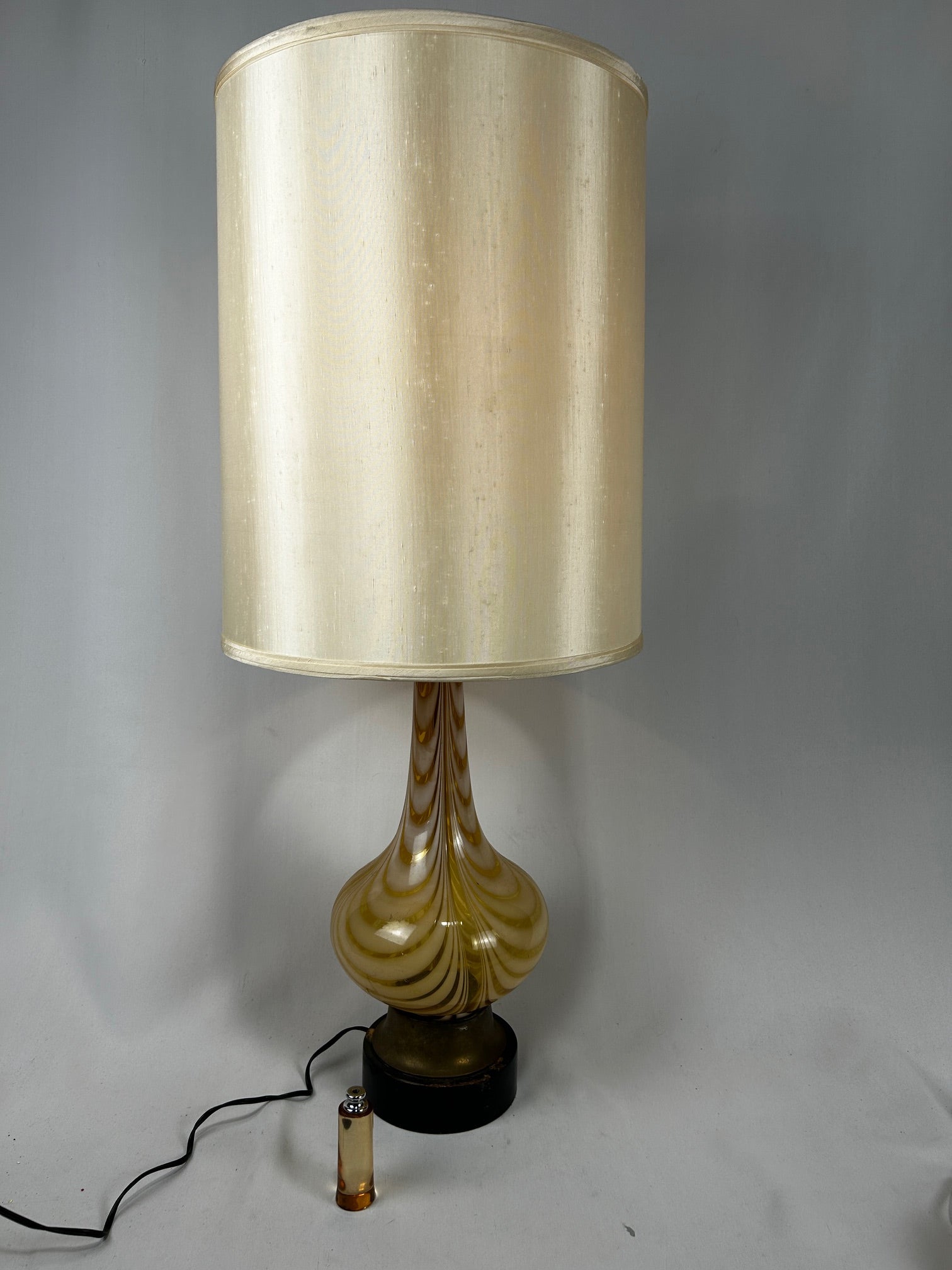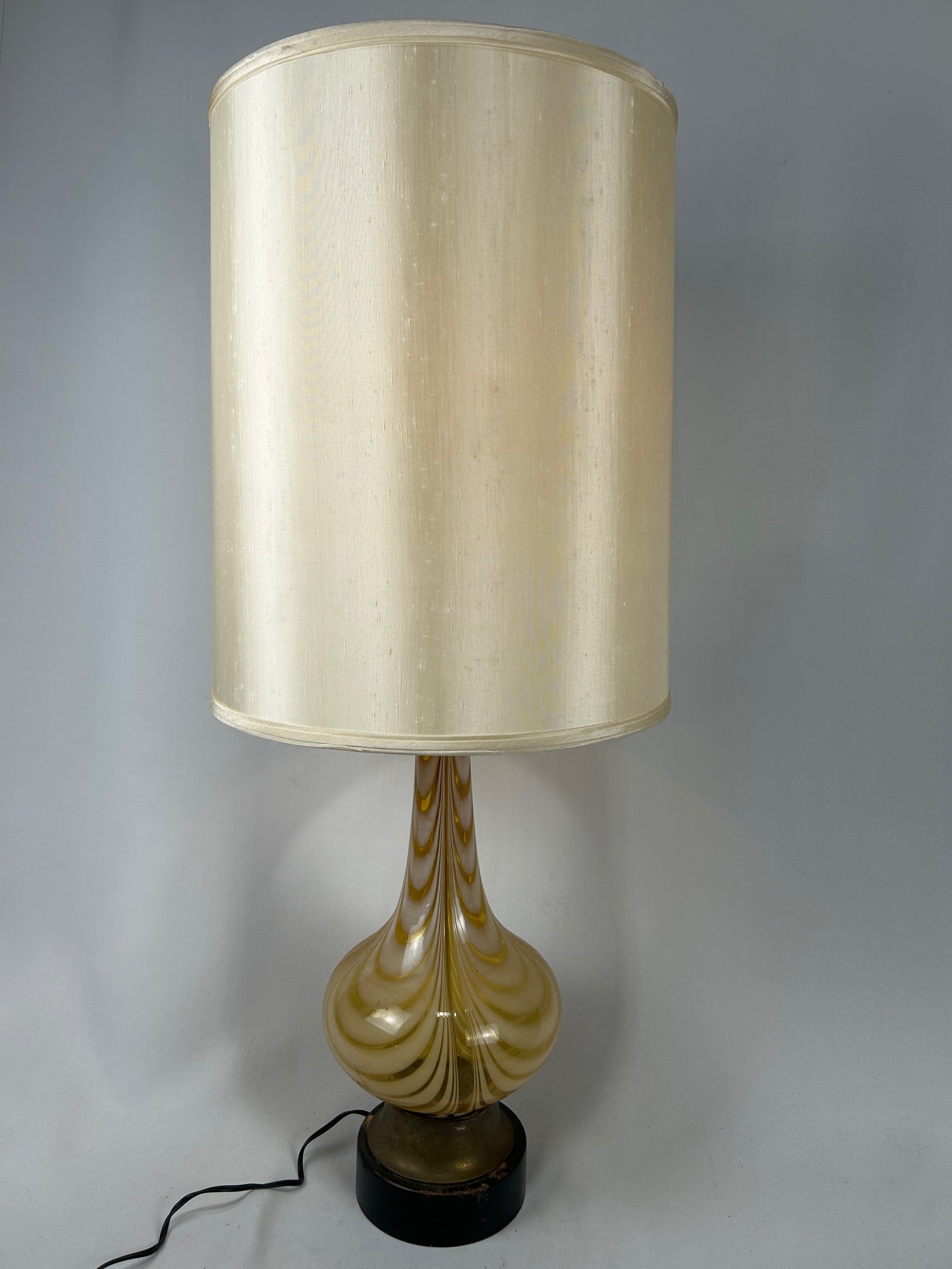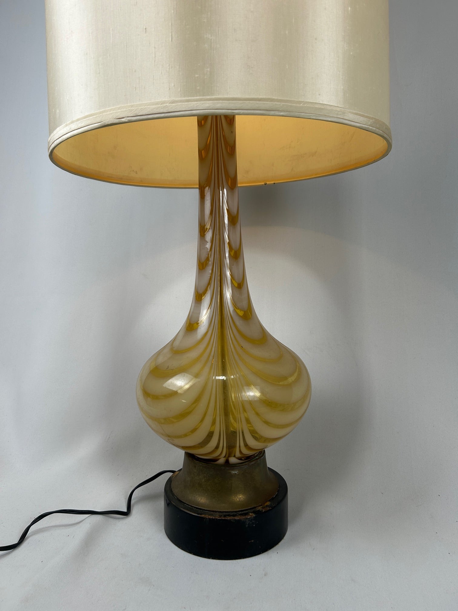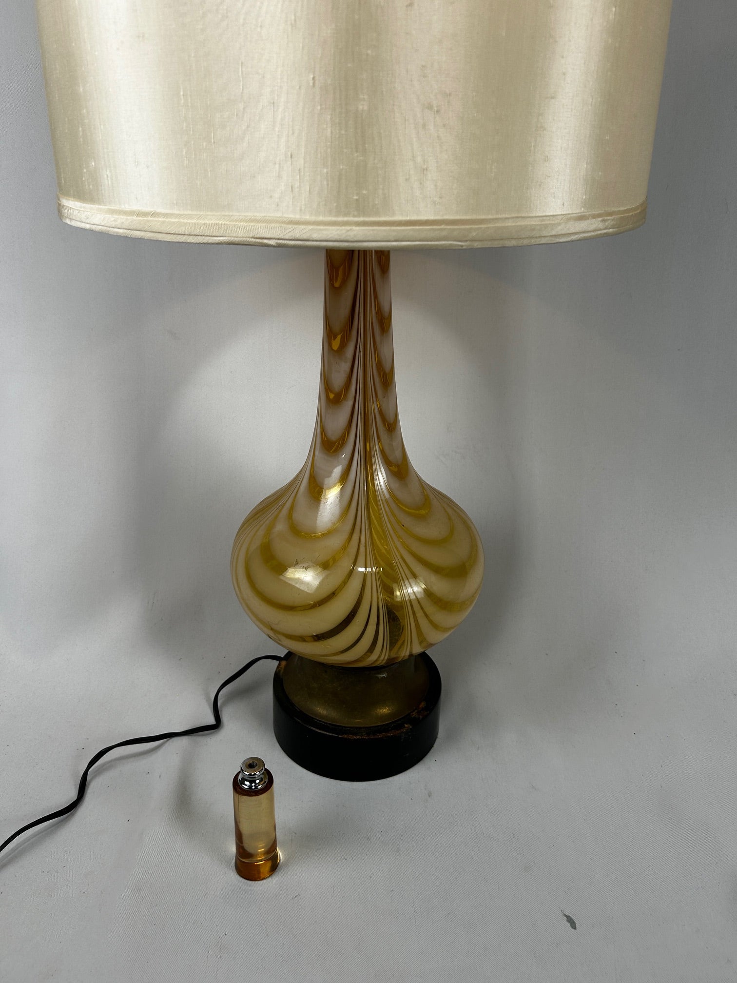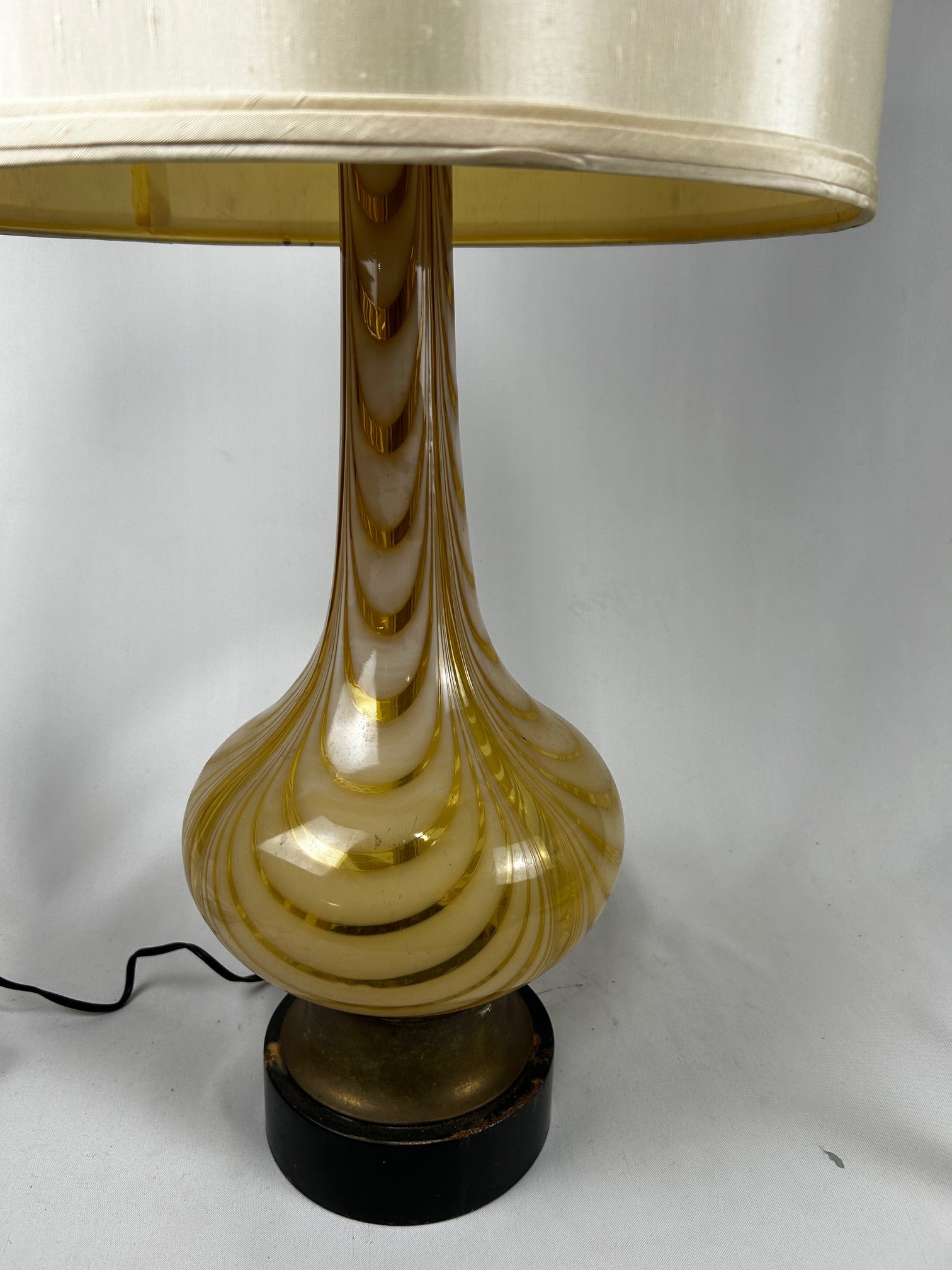 Table lamp Murano Style Lamp with pulled feather design Applied over hand blown Golden Honey Glass and linen shade