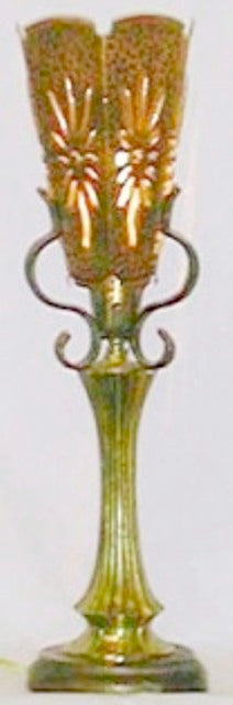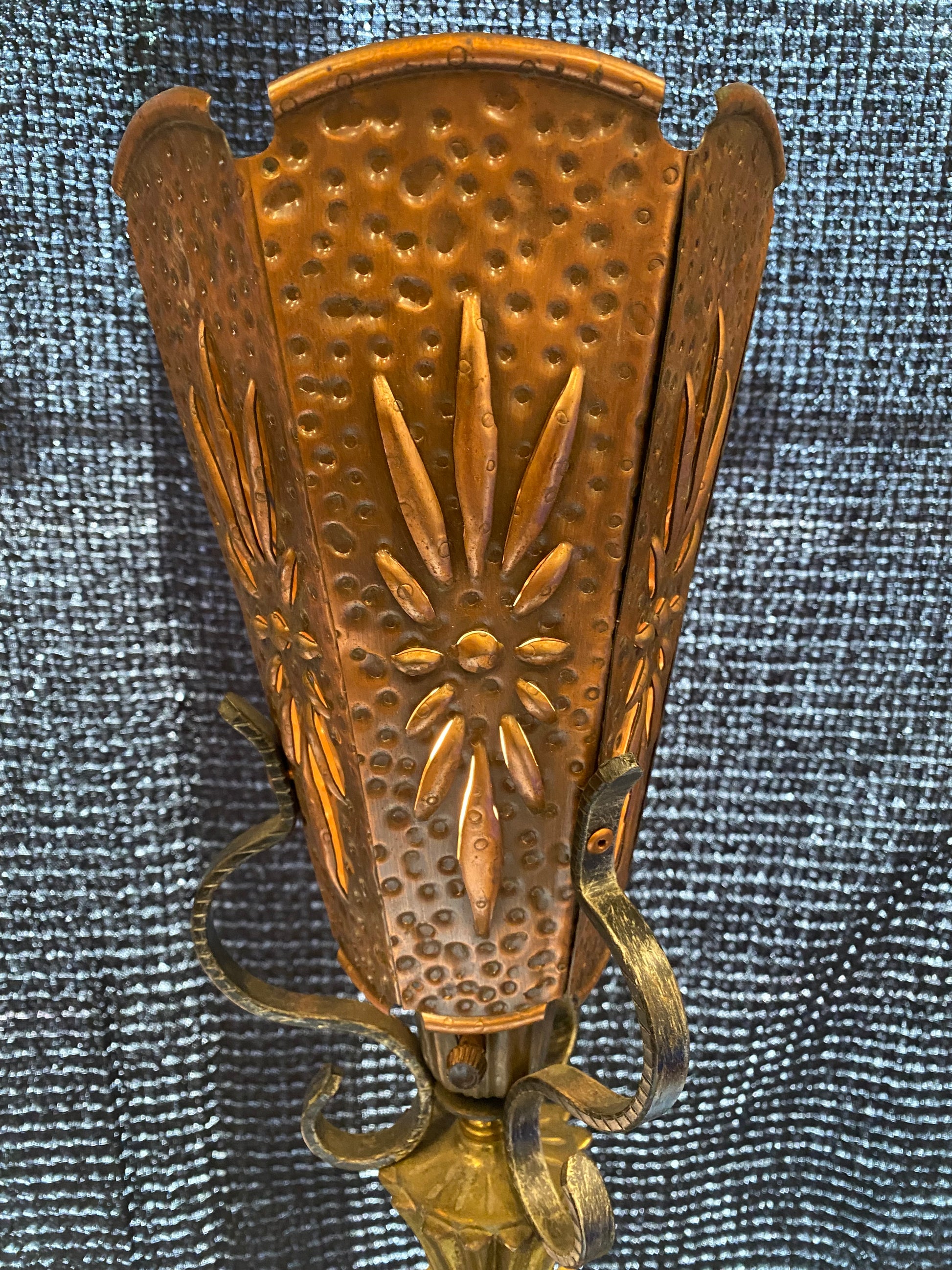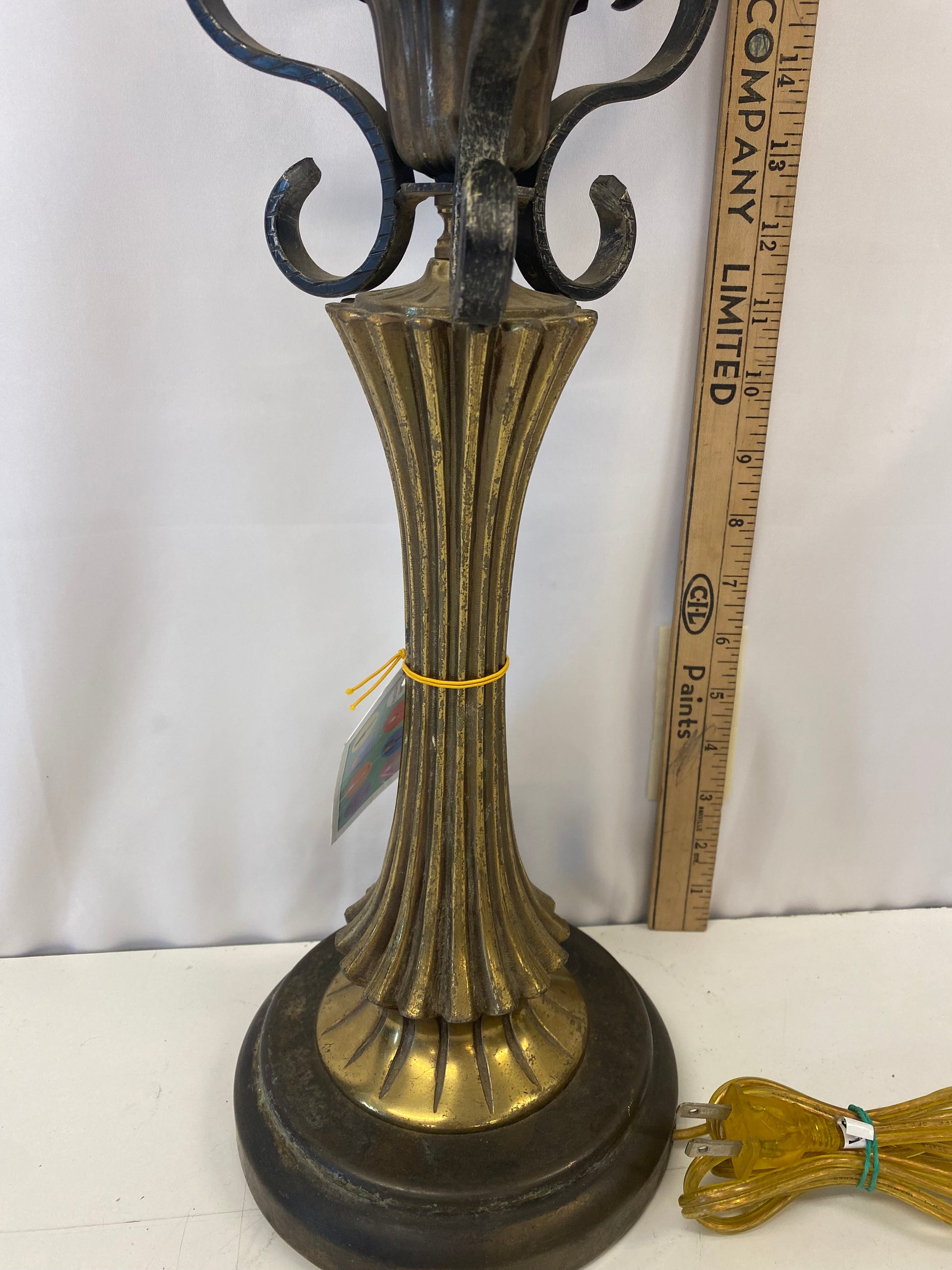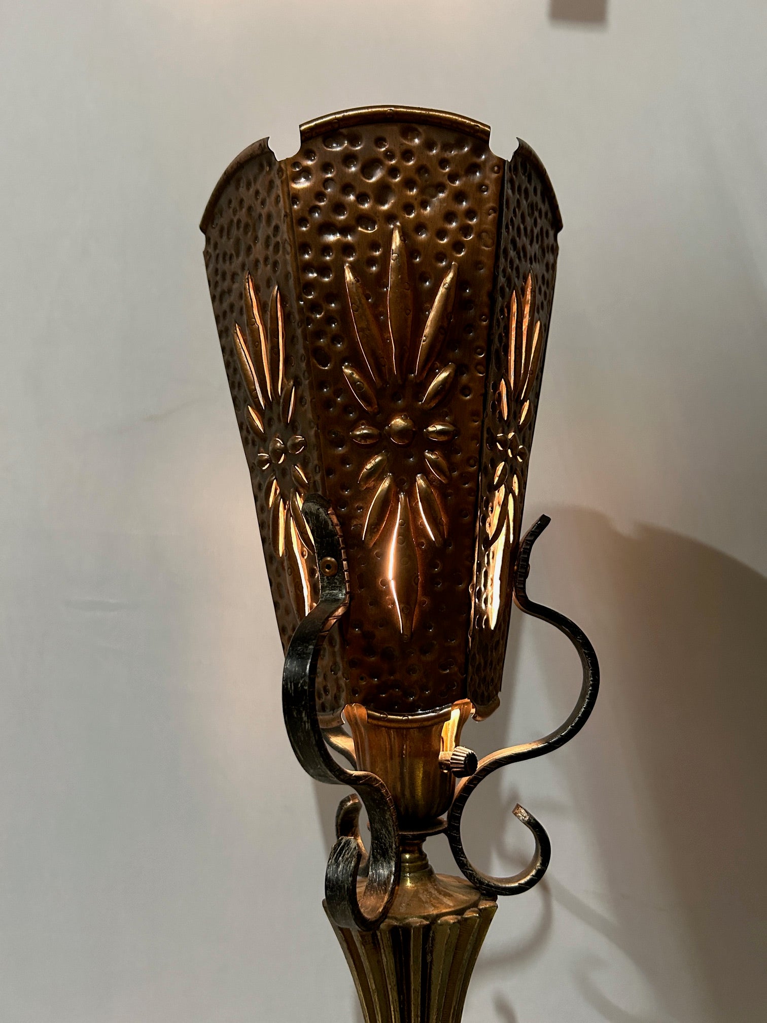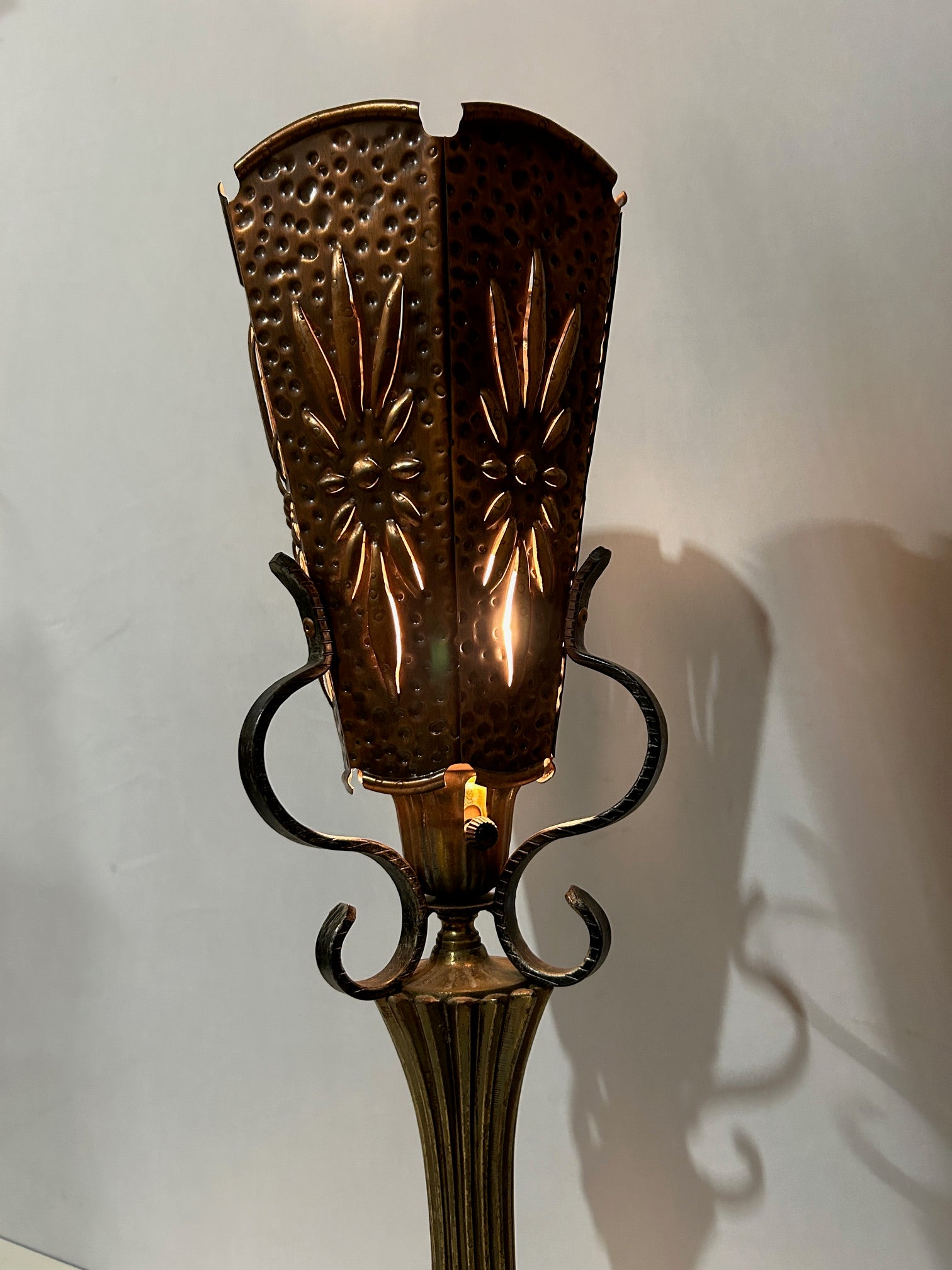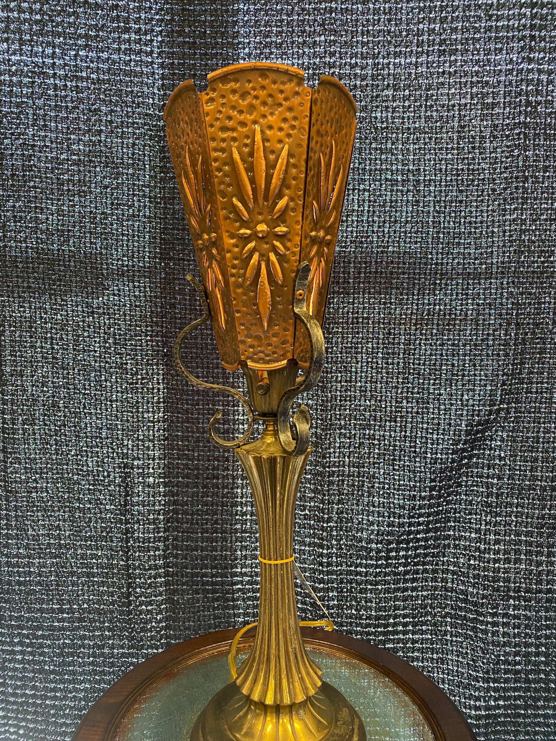 Table Lamp antique cast metal with perforated copper shade upright lighting