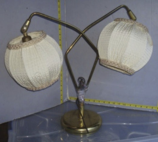 Vintage Table lamp Brass 2 arm with round Linen shade with gold trim top & bottom