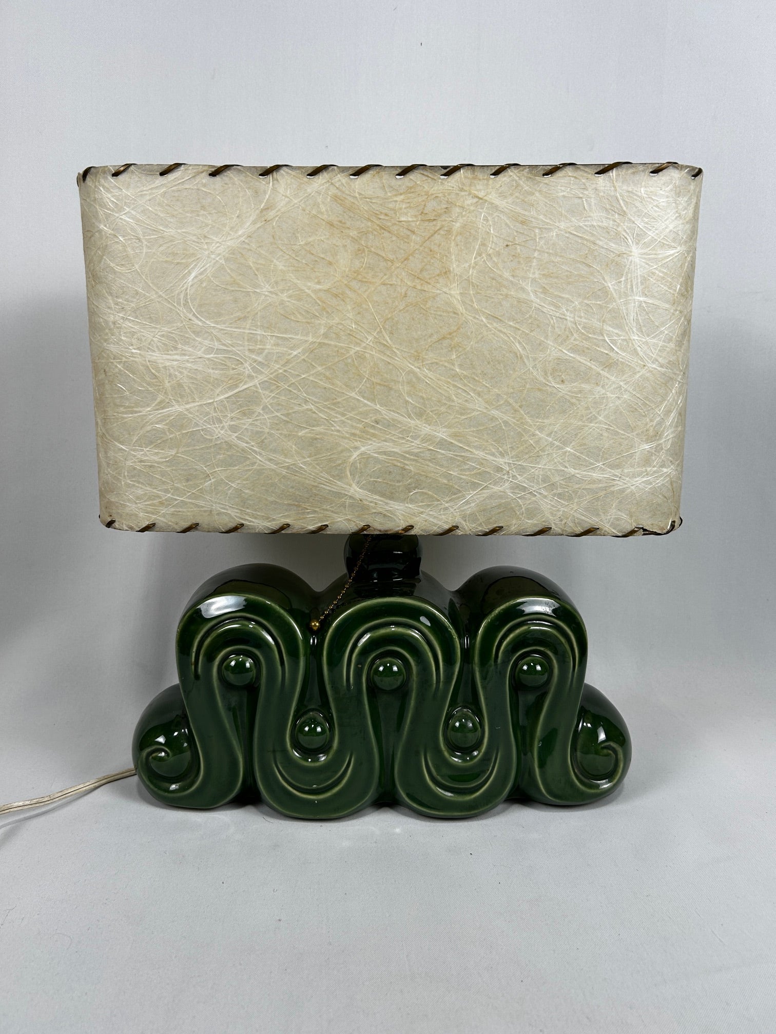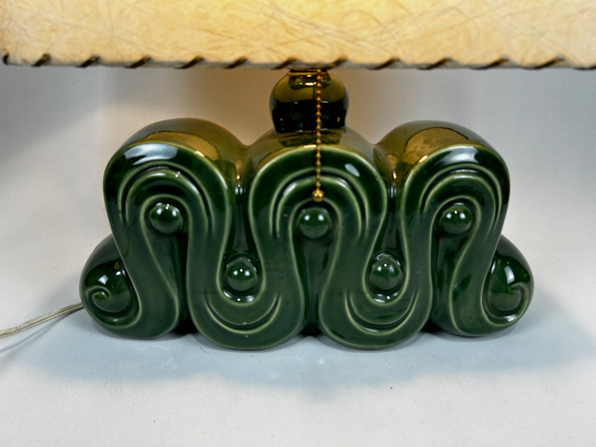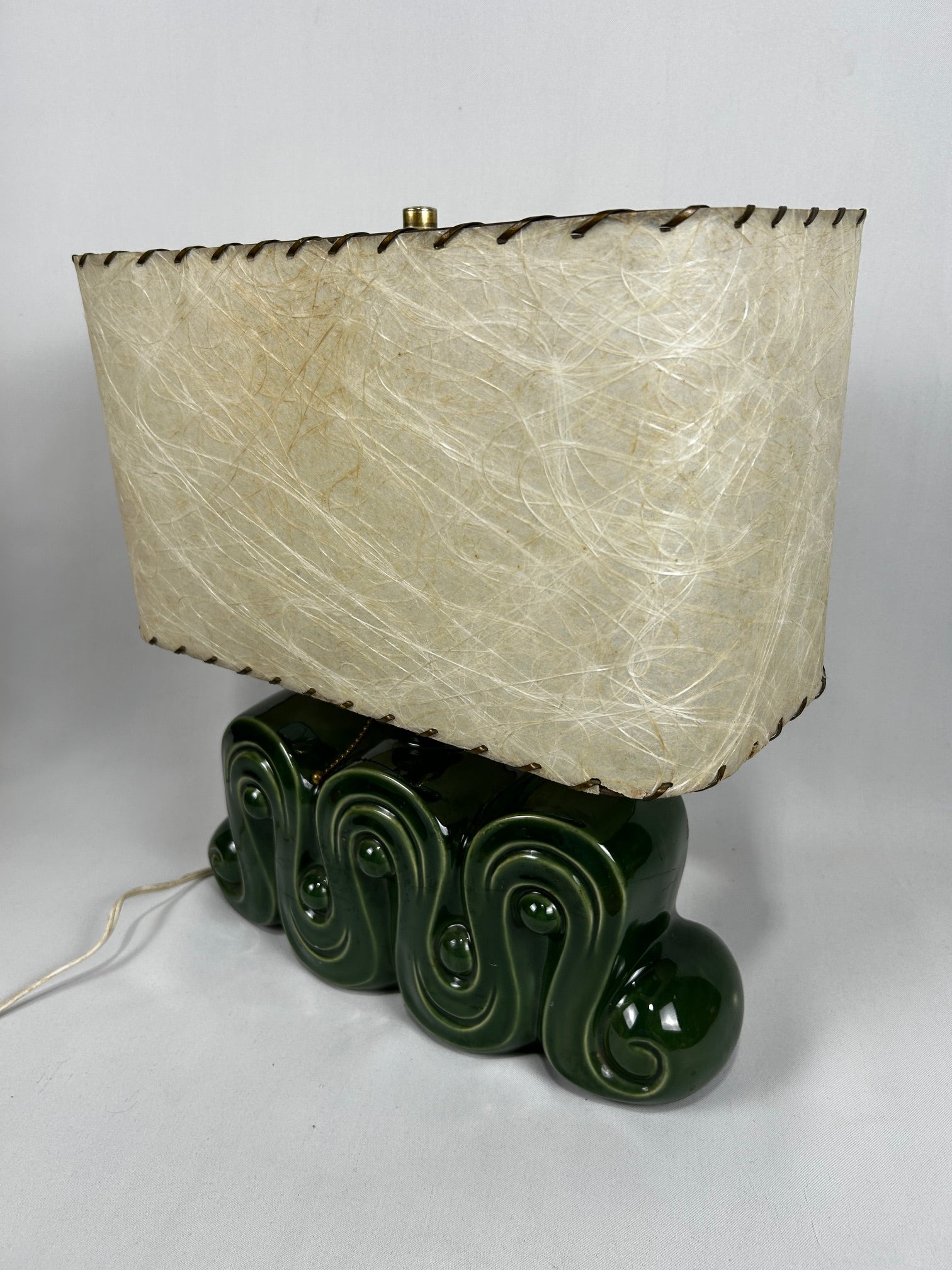 Vintage Table lamp Green Rubin ceramic with rectangular fiberglass shade with lacing