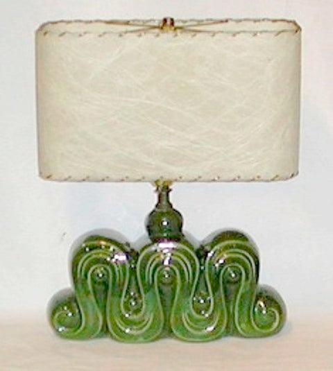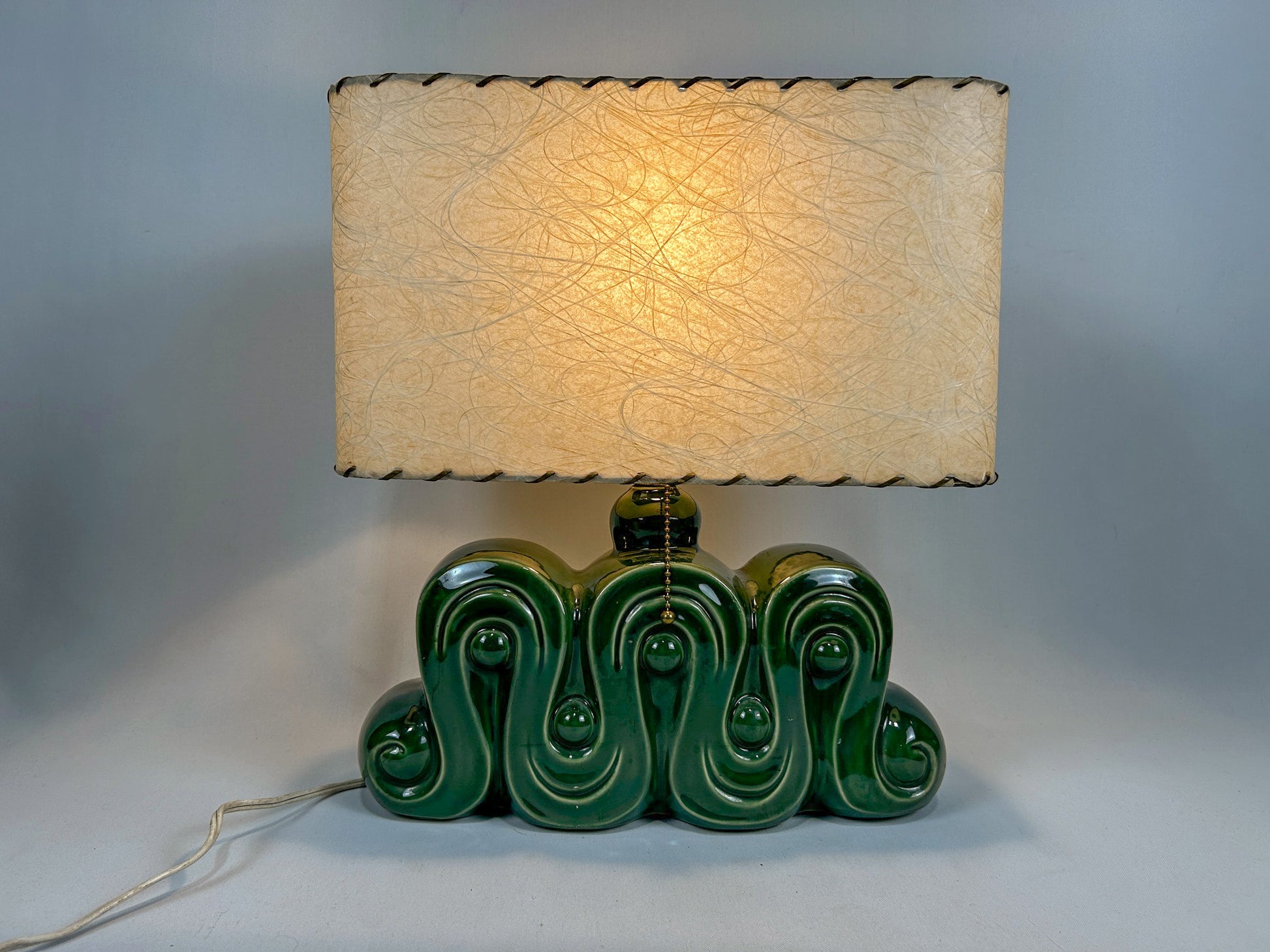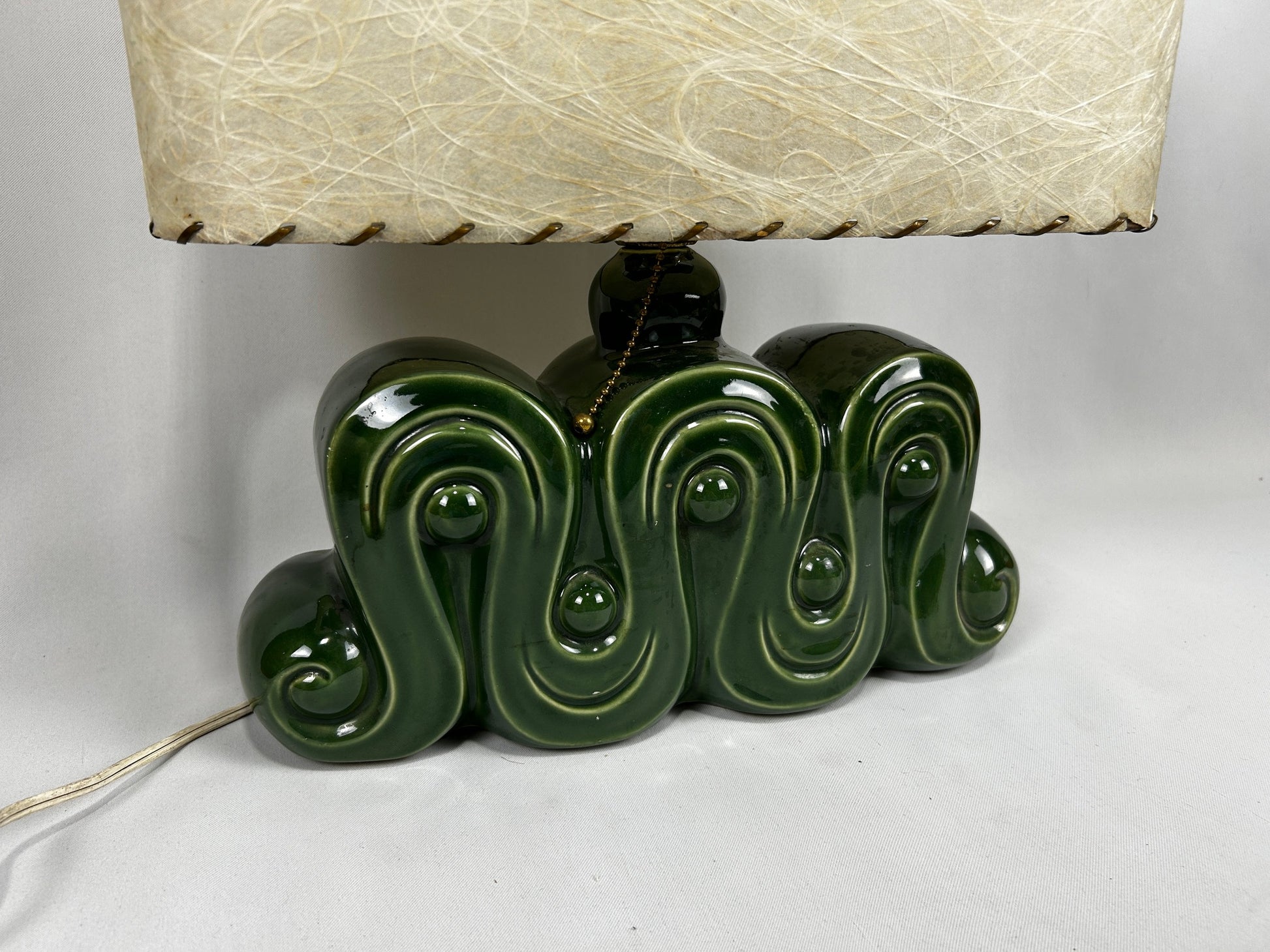 Vintage Table lamp Green Rubin ceramic with rectangular fiberglass shade with lacing
