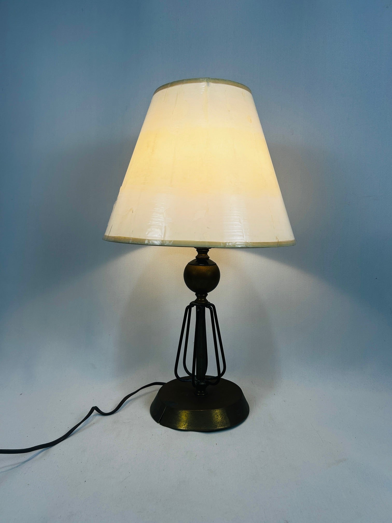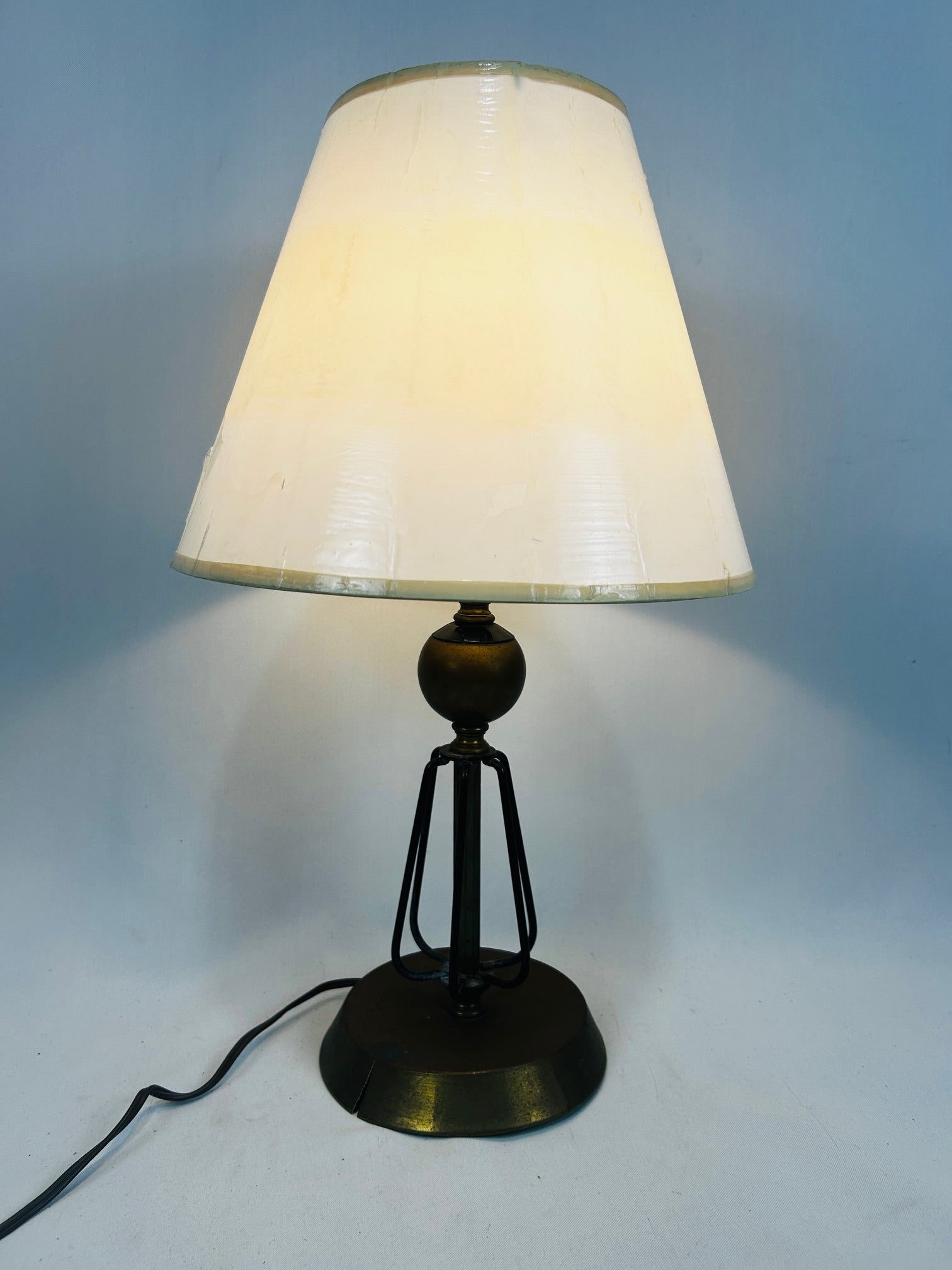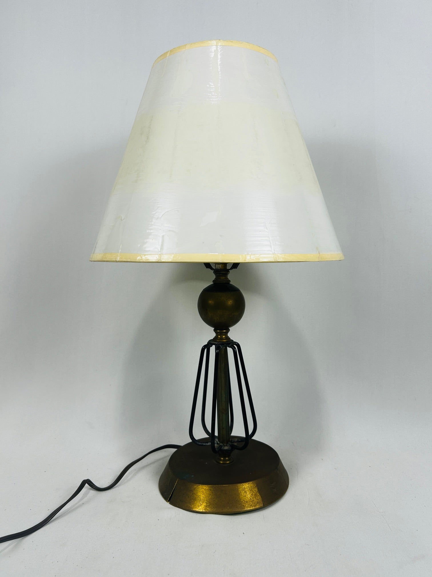 Table lamp with black wire and Brass ball with Hard pleated shade