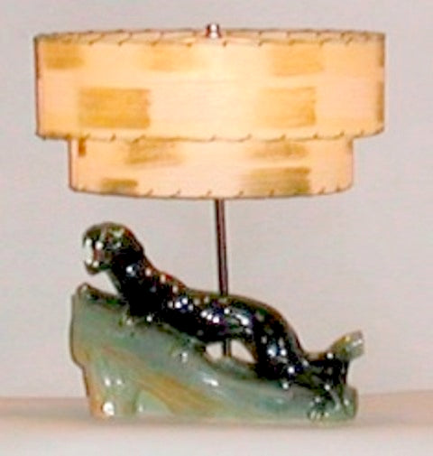 Vintage Black Panther on a green branch with Dble fiberglass shade with gold swirl and lacing