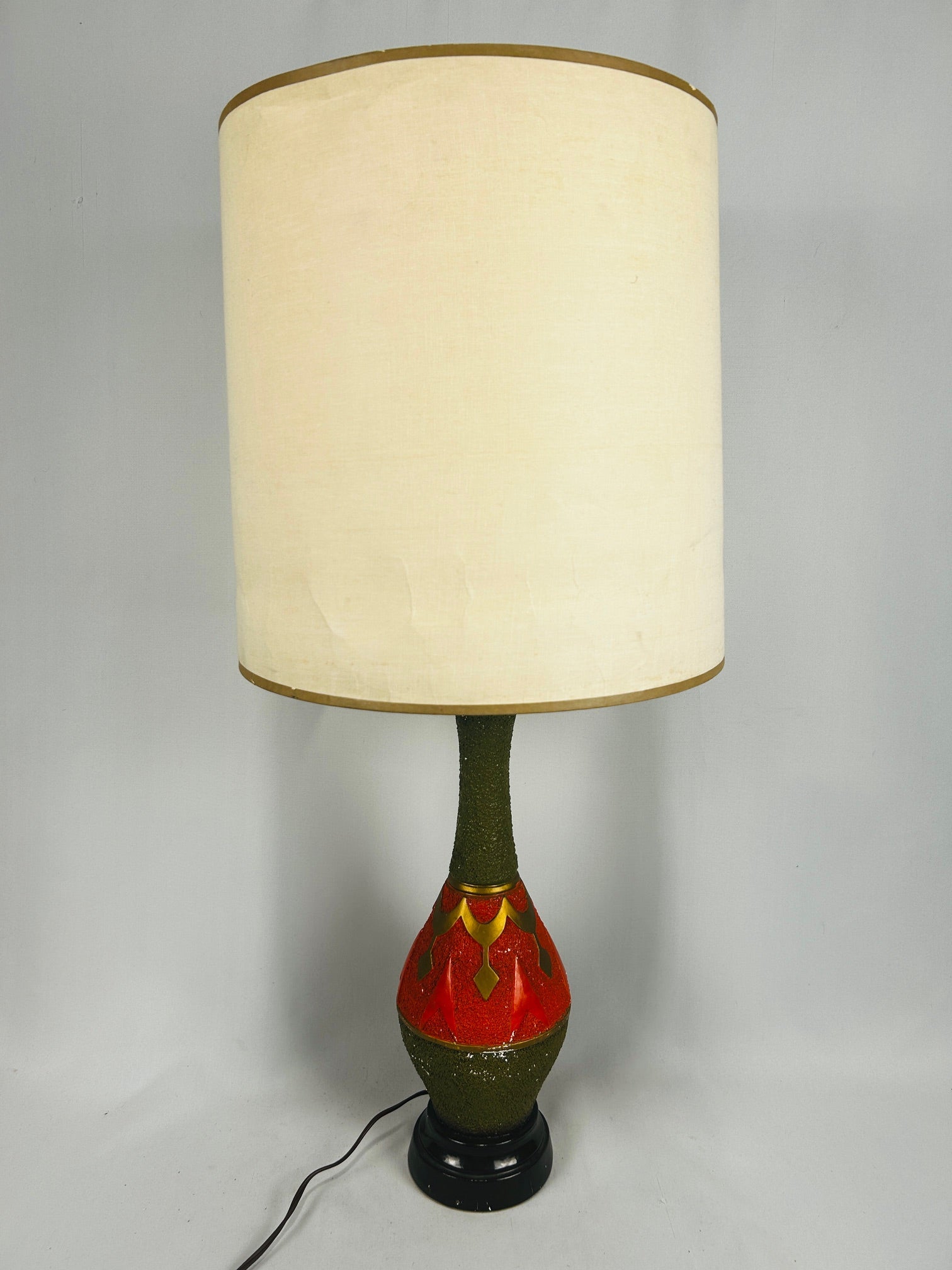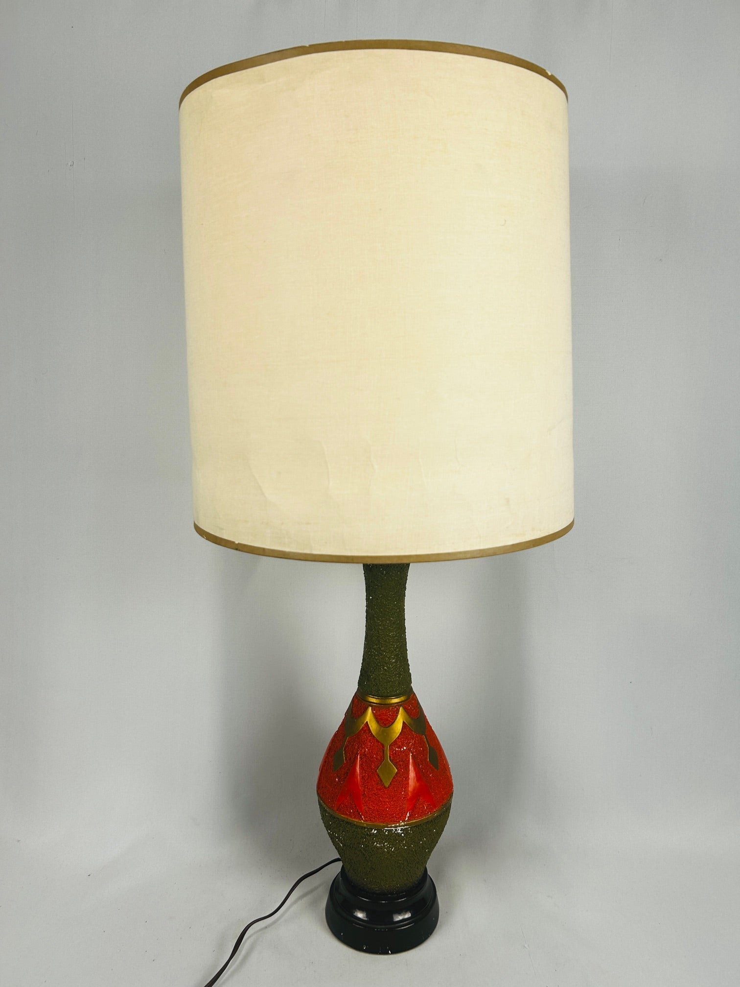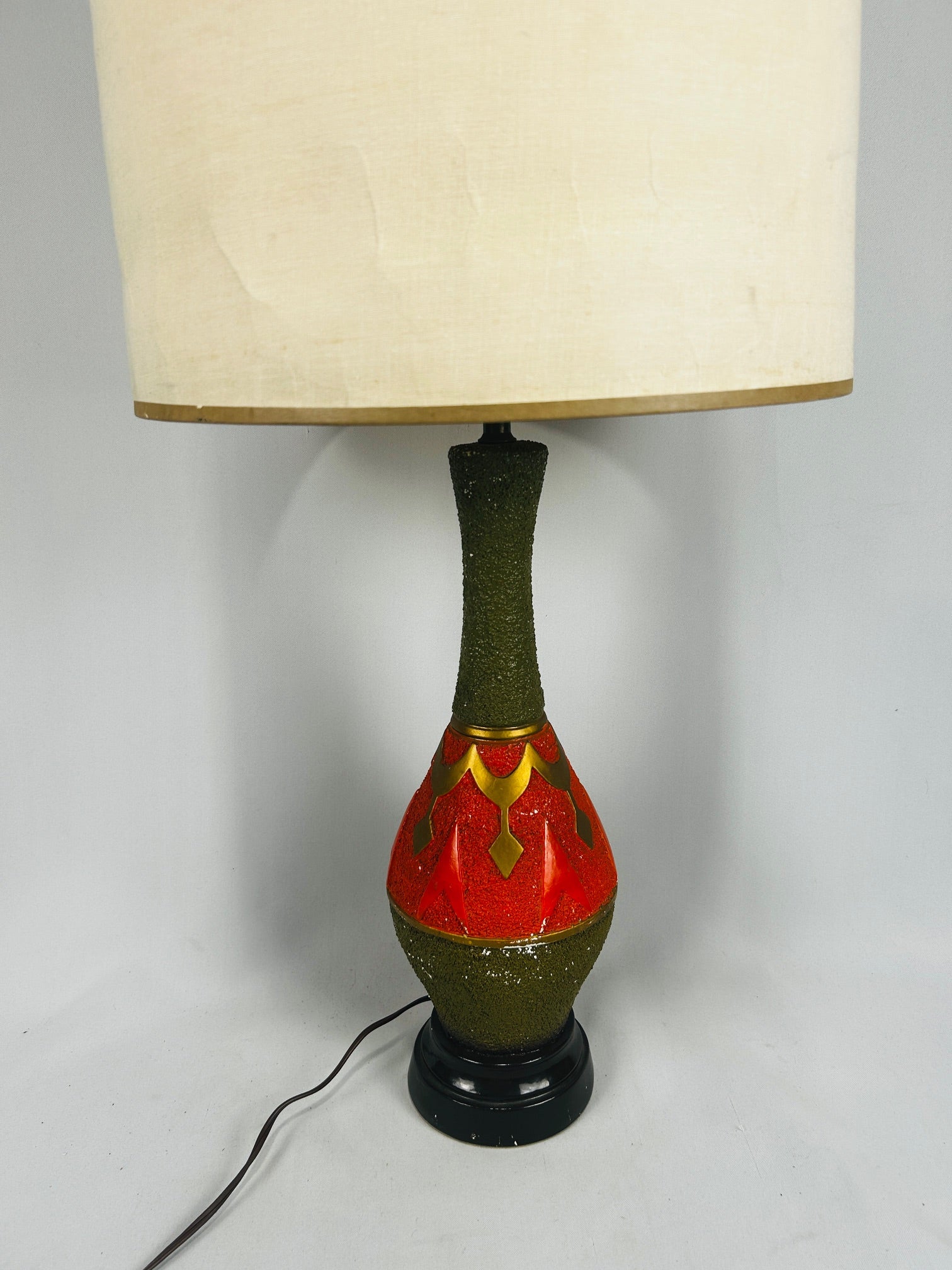 Table lamp Chalkware with orange accents and Cylinder shade