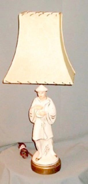 Table lamp Ceramic Chineese figurine with pagoda fiberglass shade with lacing