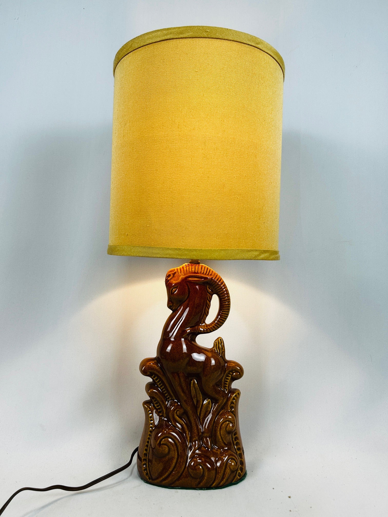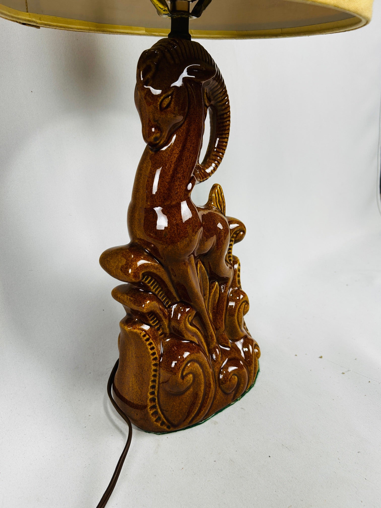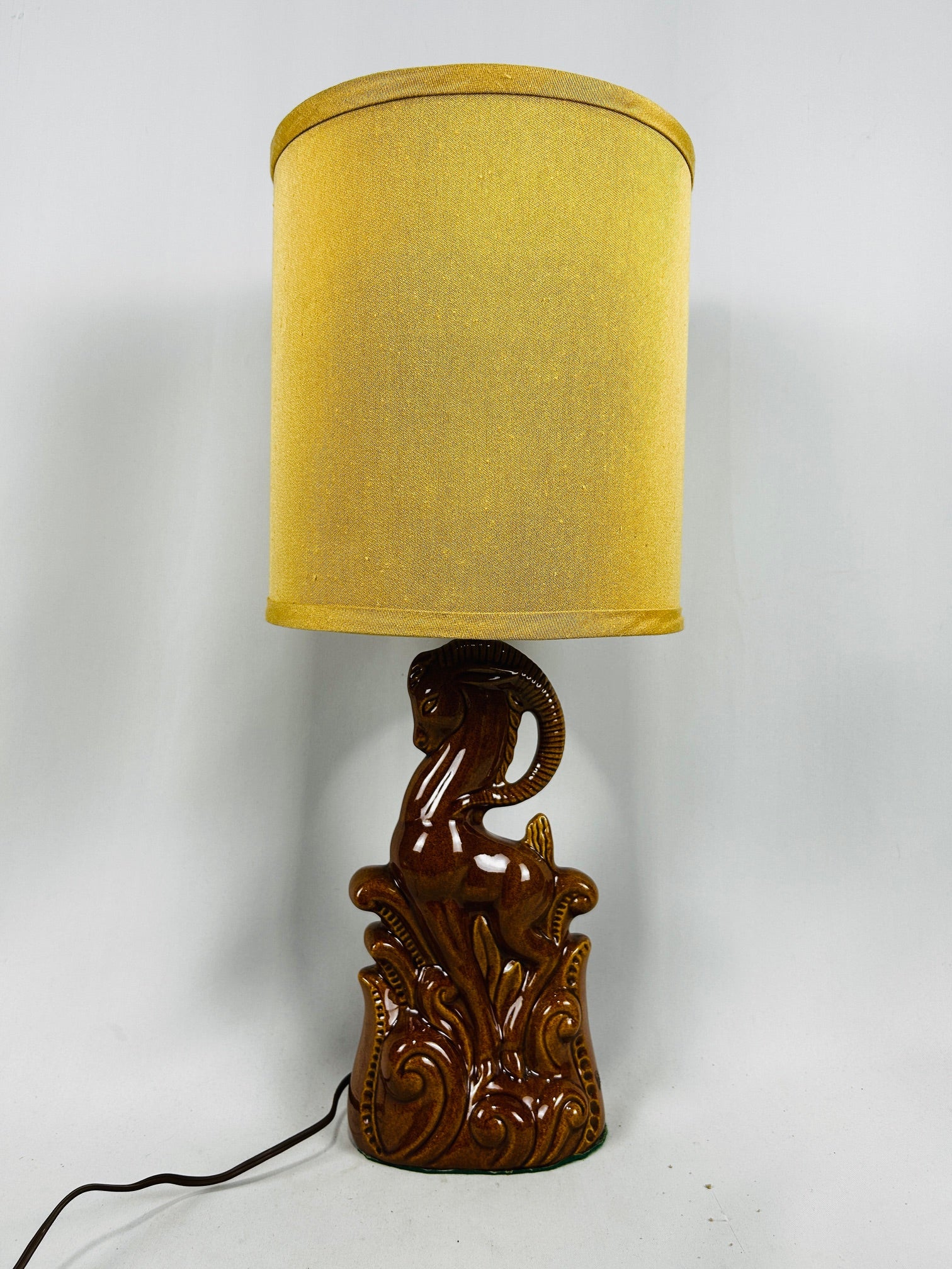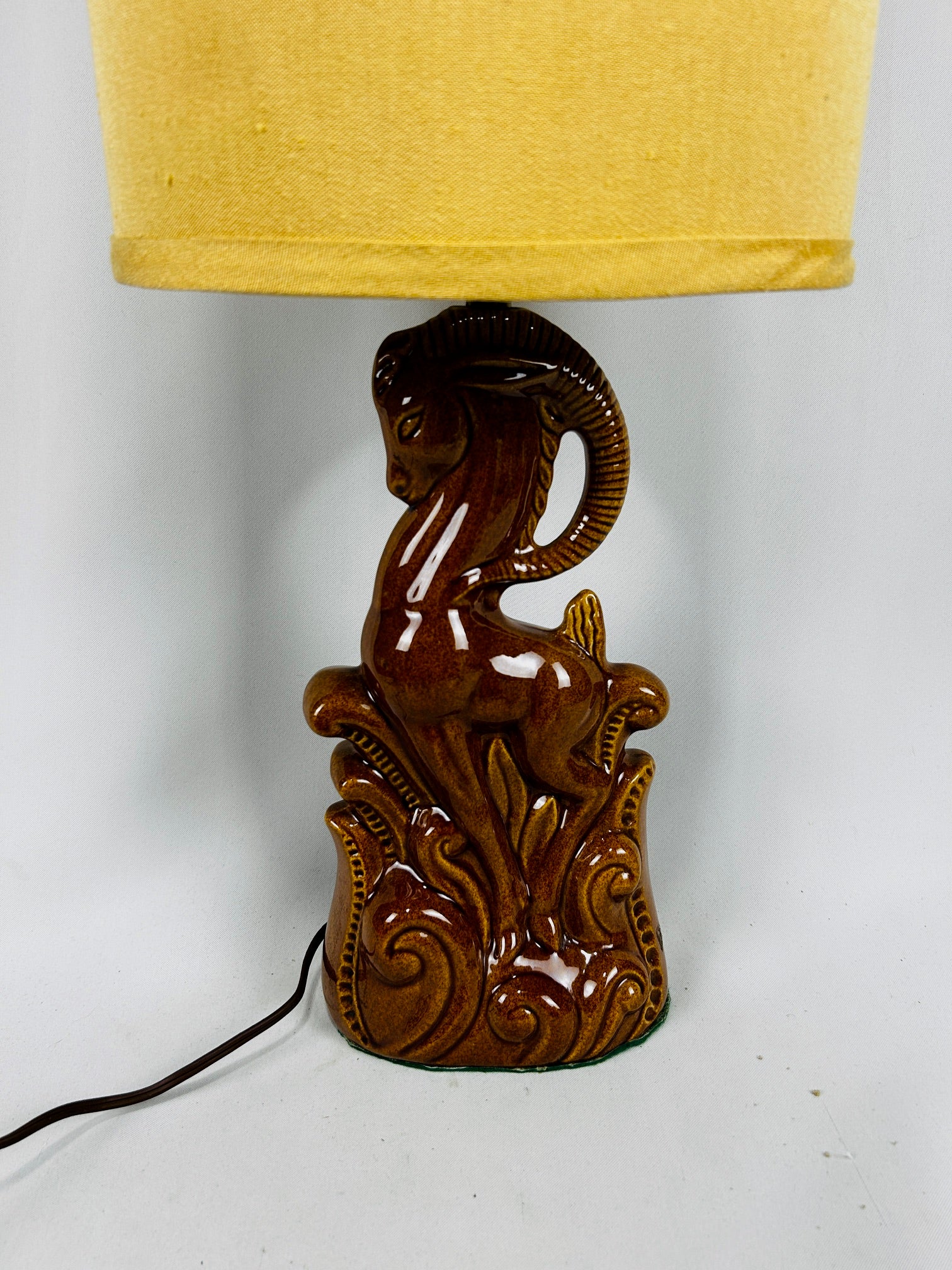 Vintage table lamp Retro Brown ceramic horse with Fiberglass shade