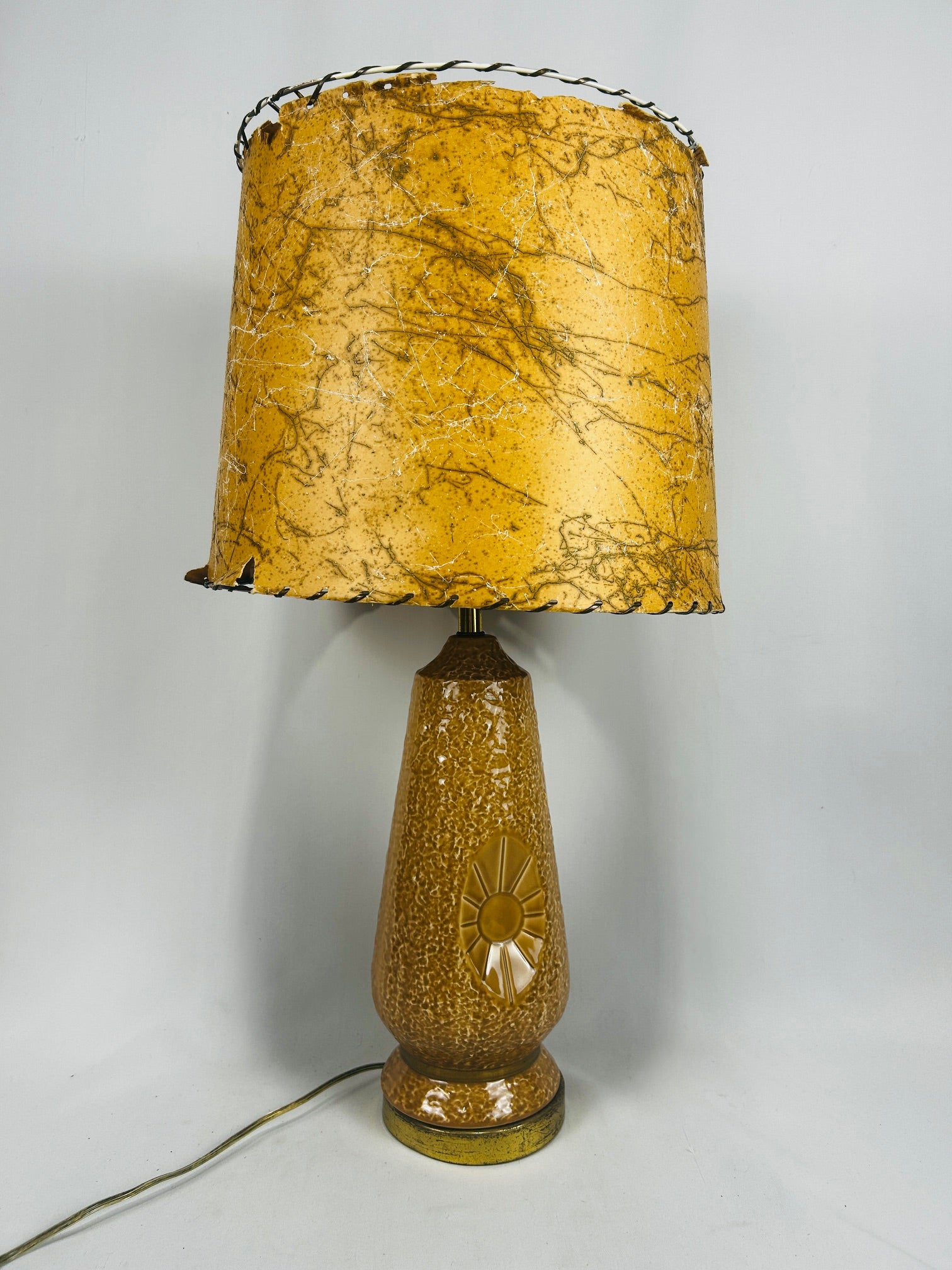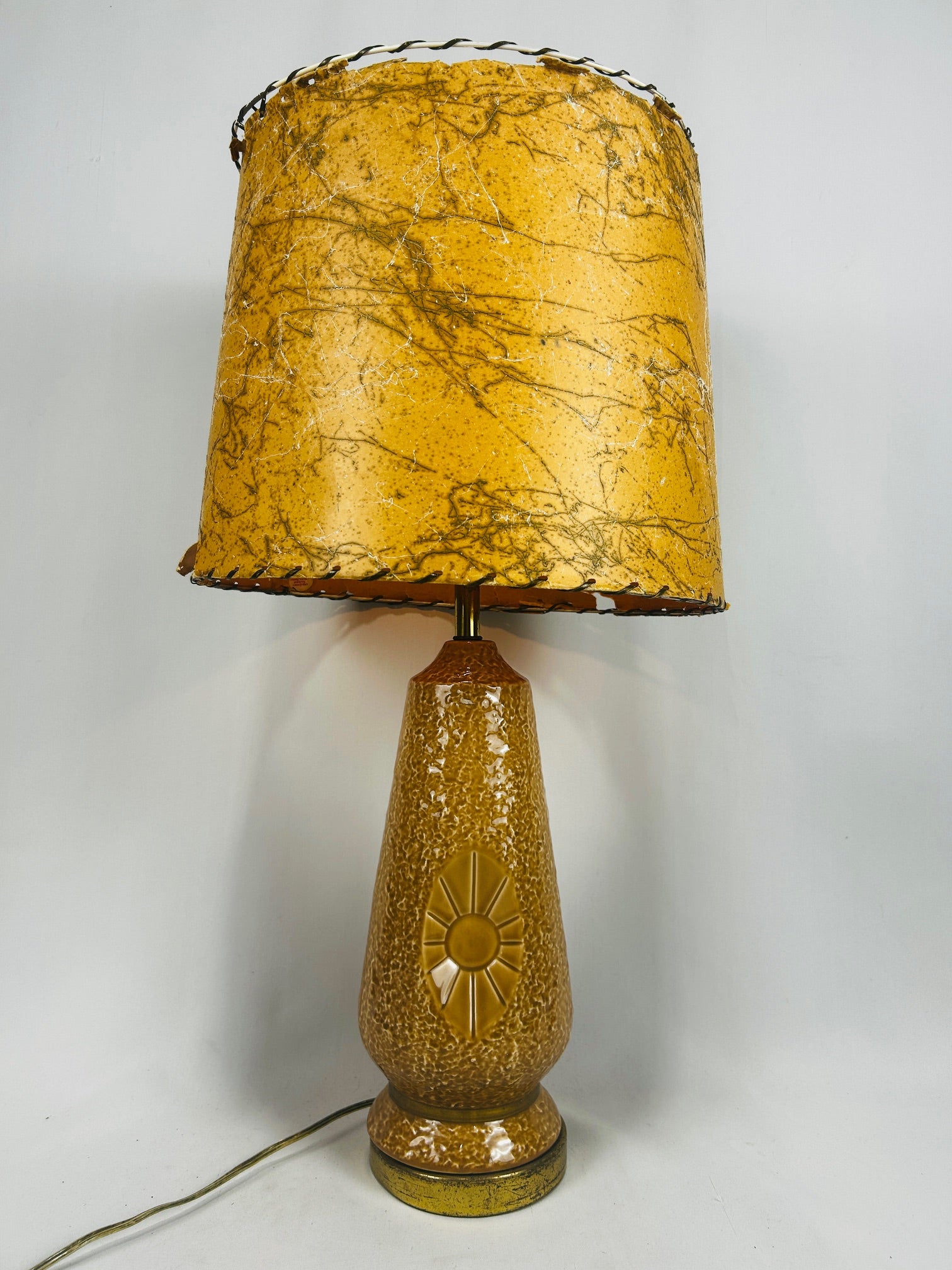 Table lamp Glaze ceramic with fiberglass shade with lacing