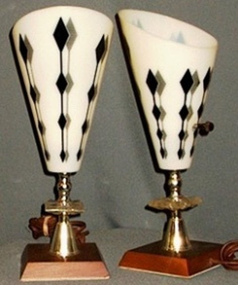 Vintage Art Deco Upright light Acrylic cone with black diamond design
