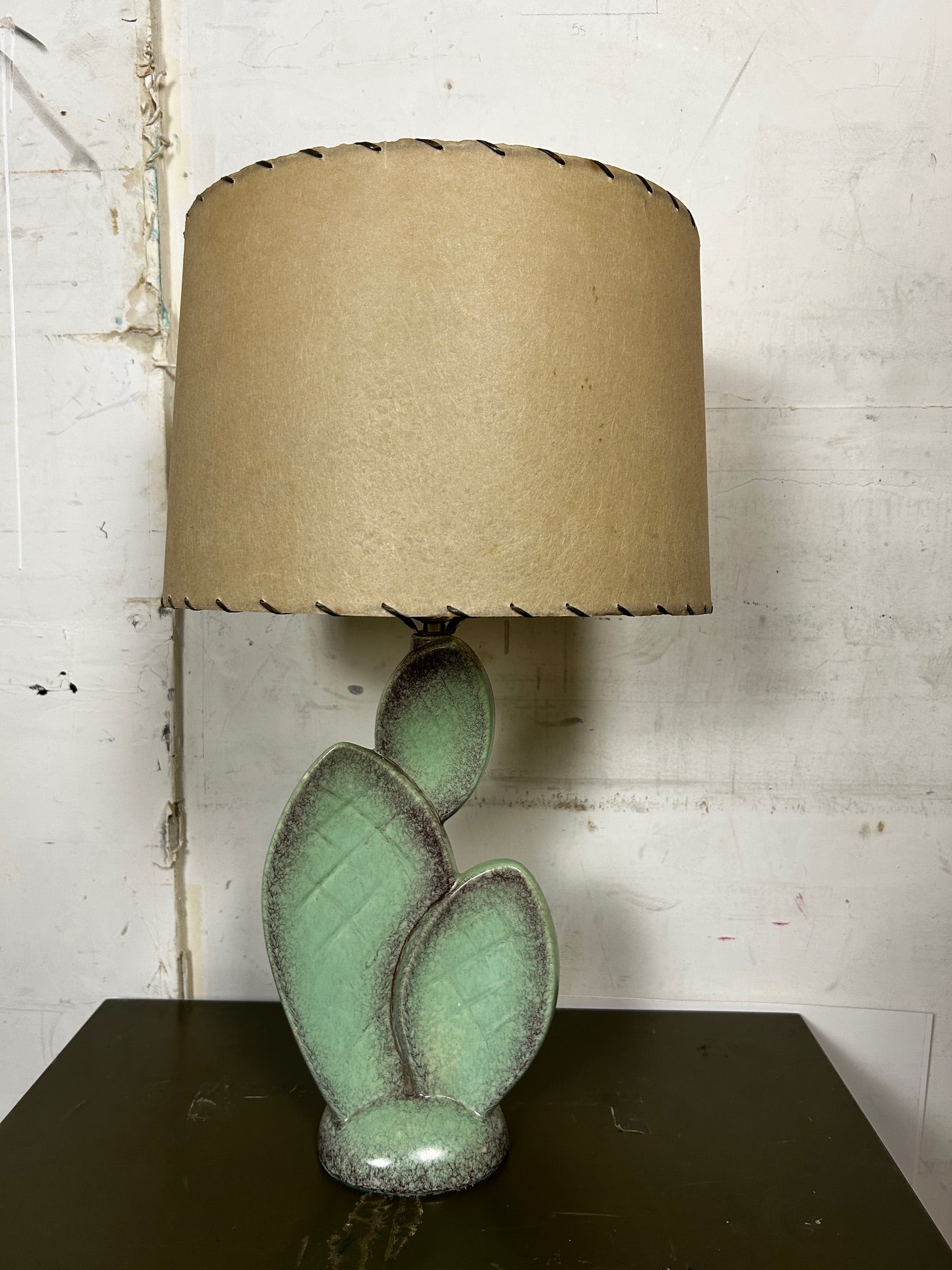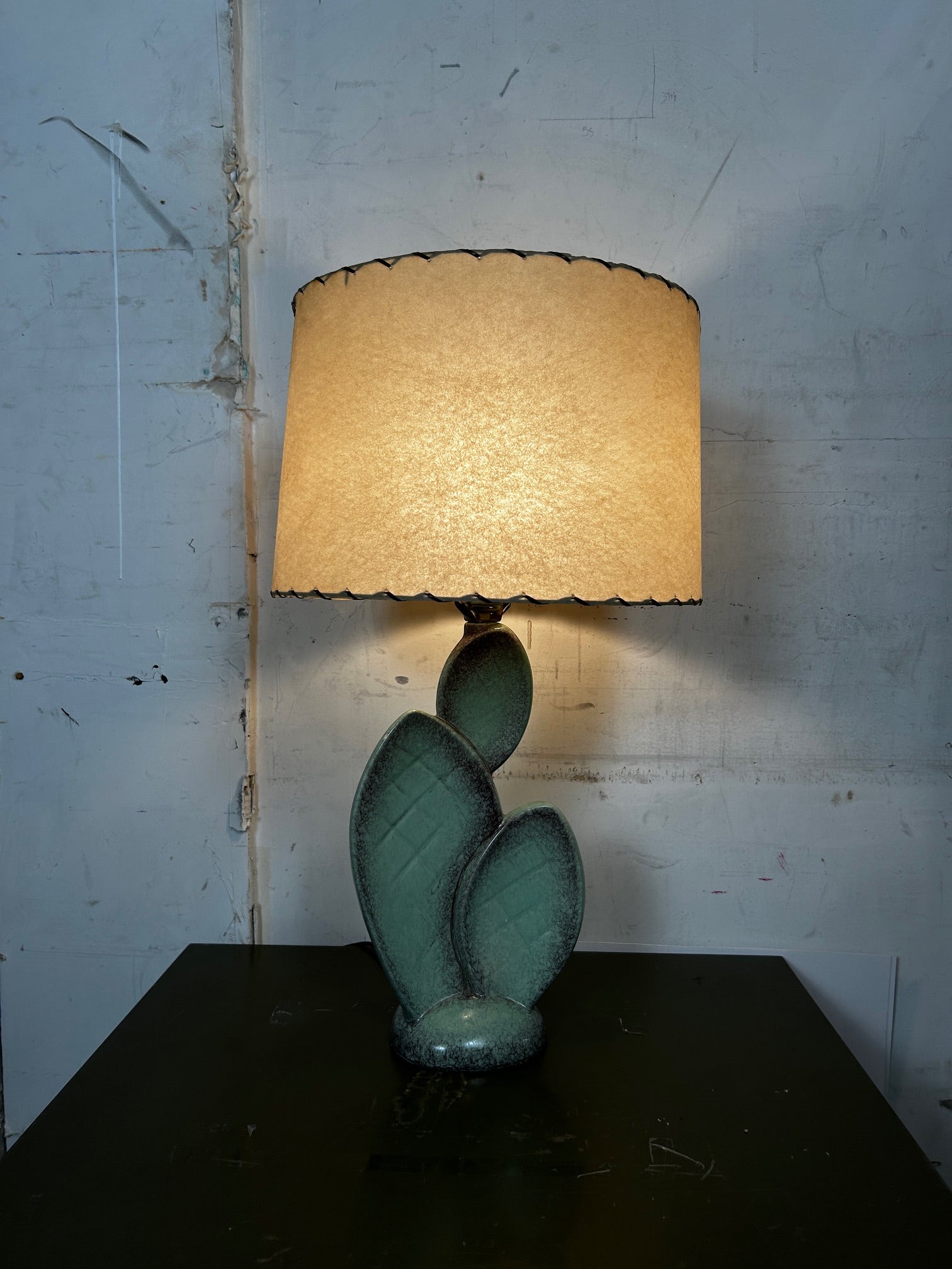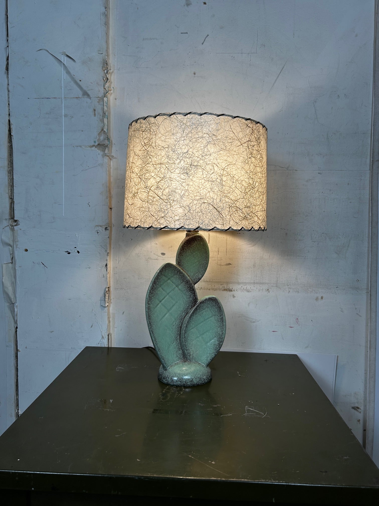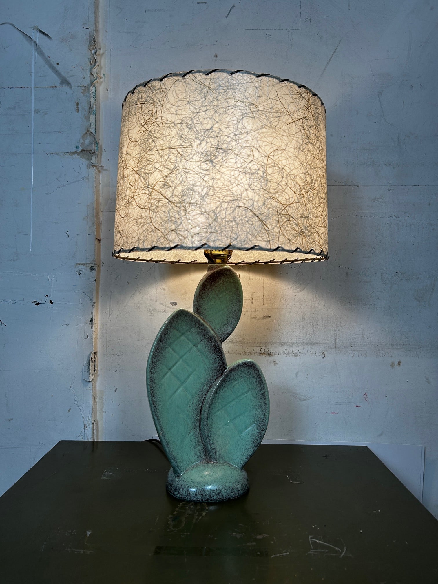 Table Porcelain lamp mint green Cactus with Fiberglass shade
