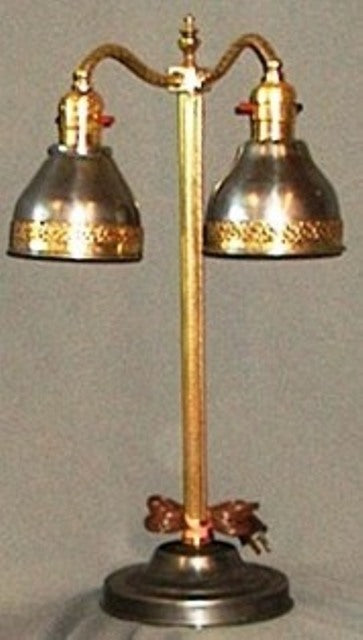 Table lamp Brass and Pewter with Dble shade with brass accents