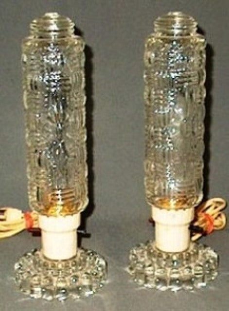 Art Deco Bullet Boudoir lamps Clear depression glass with pattern