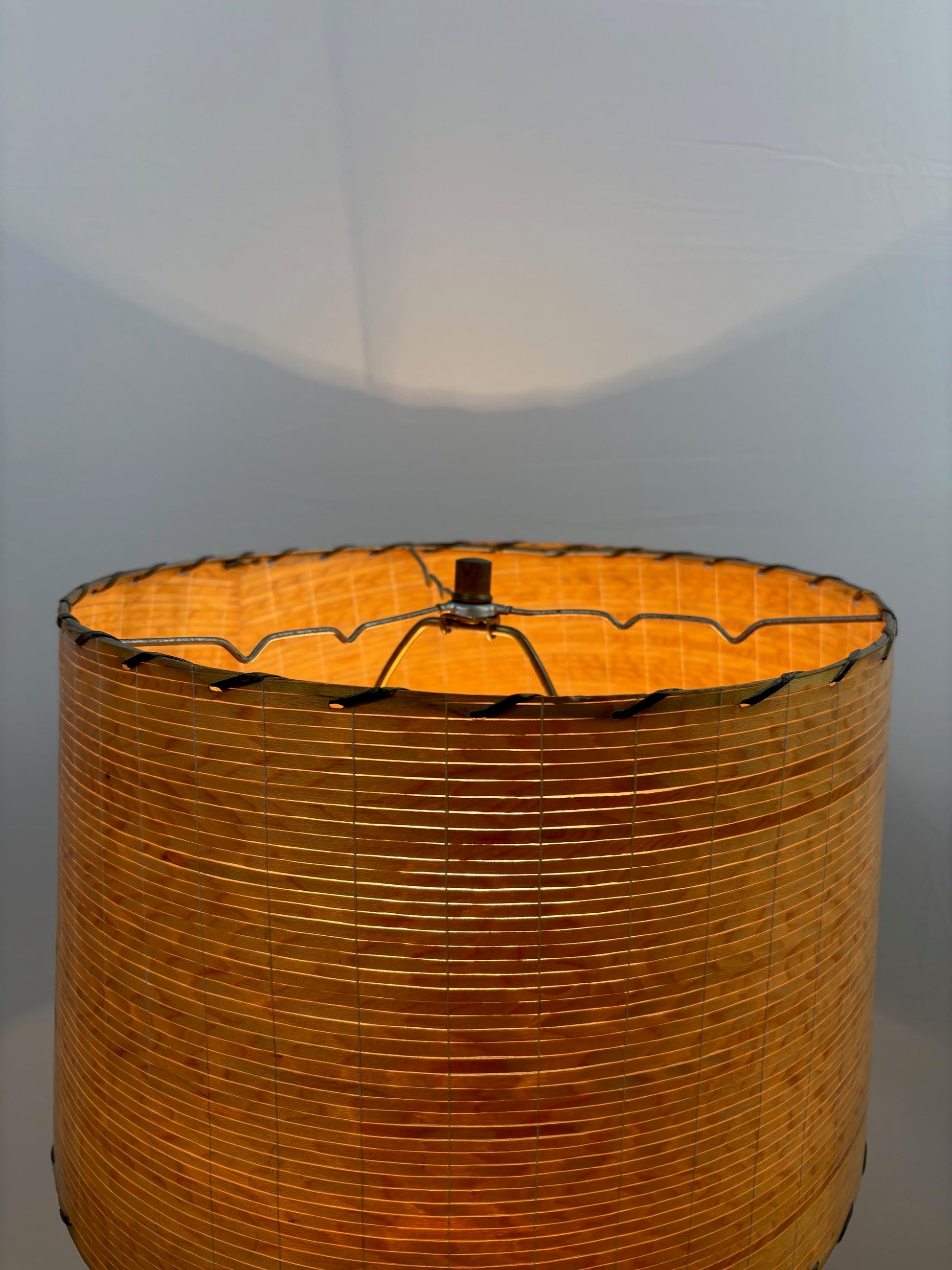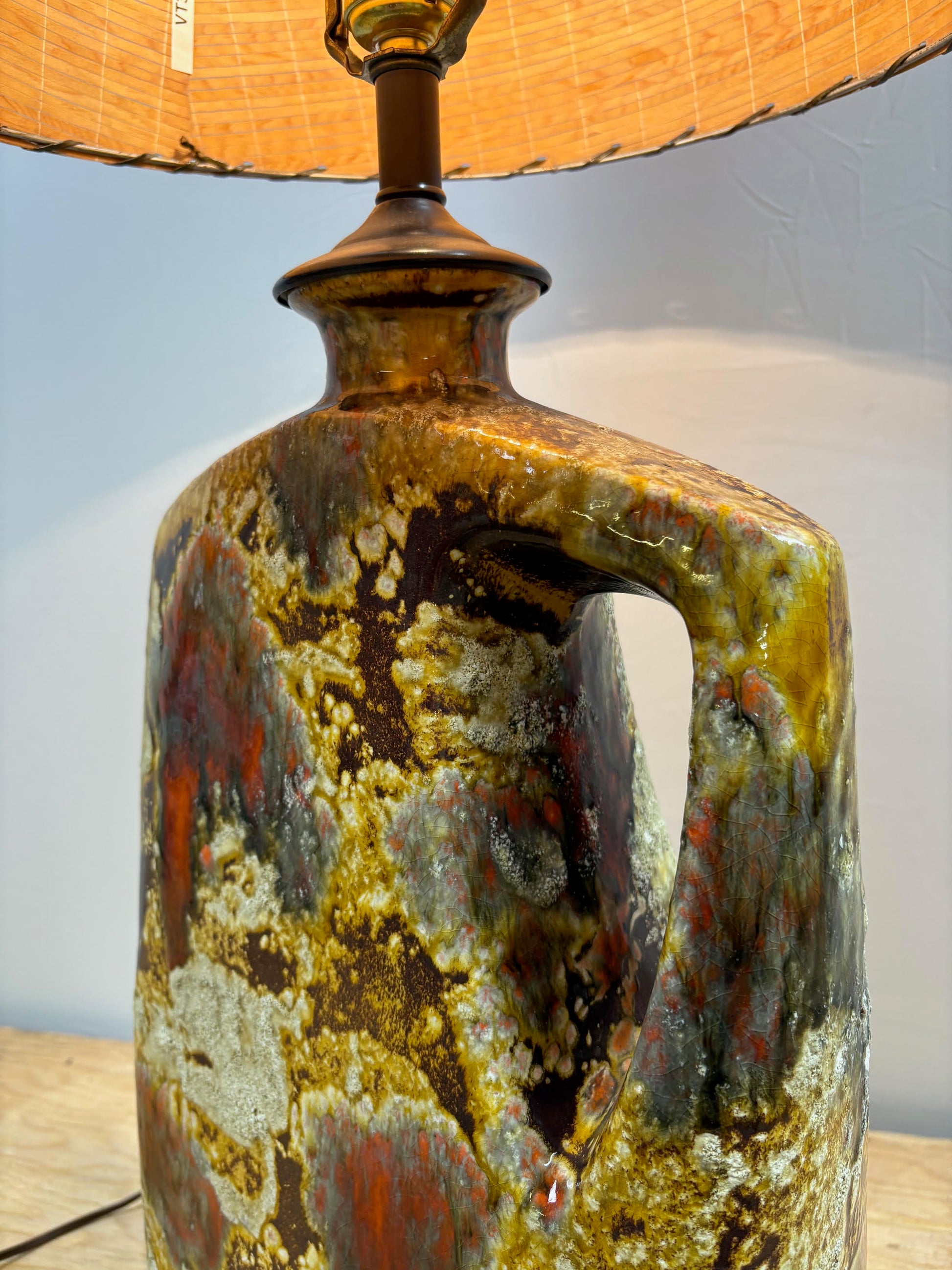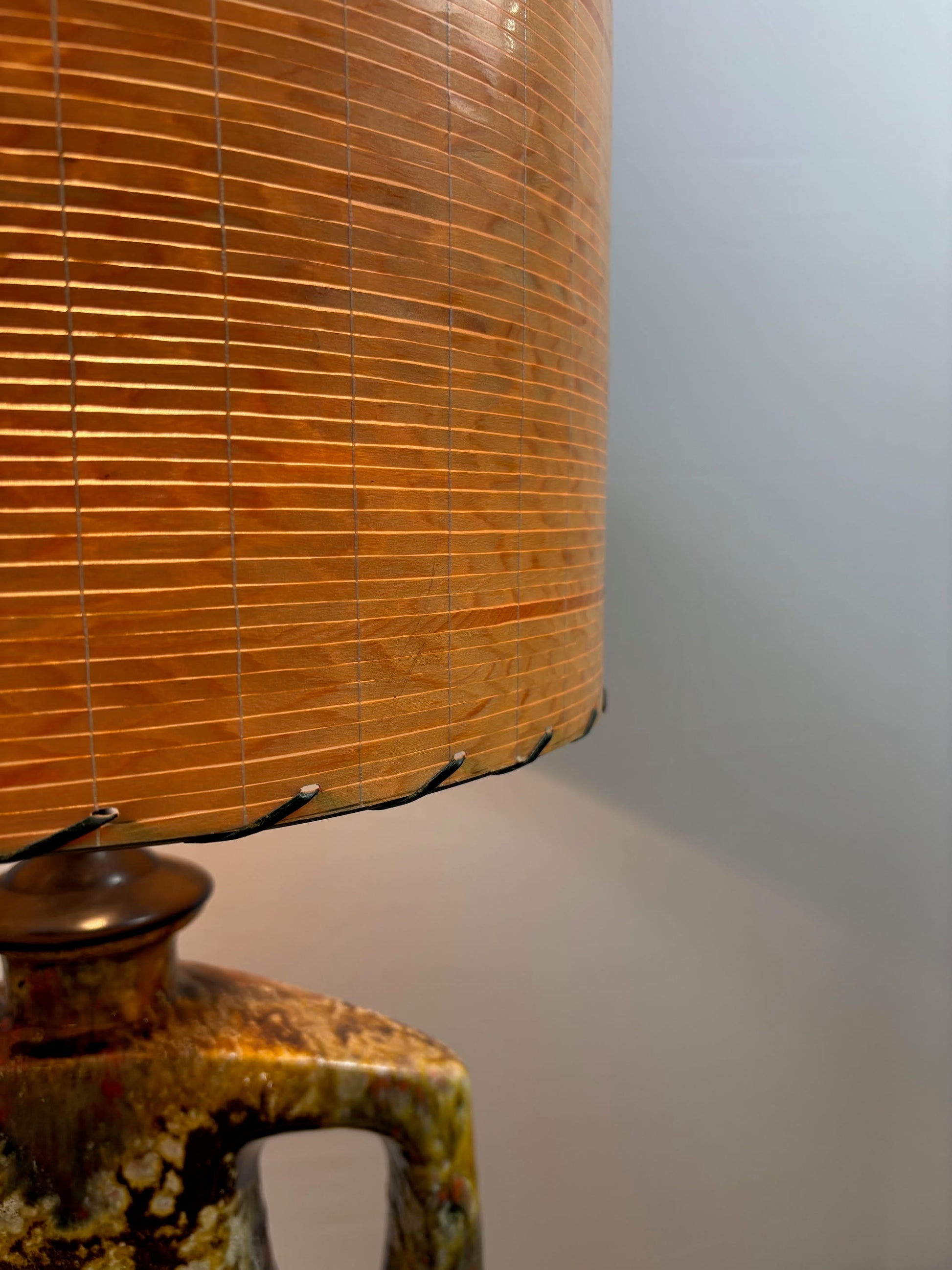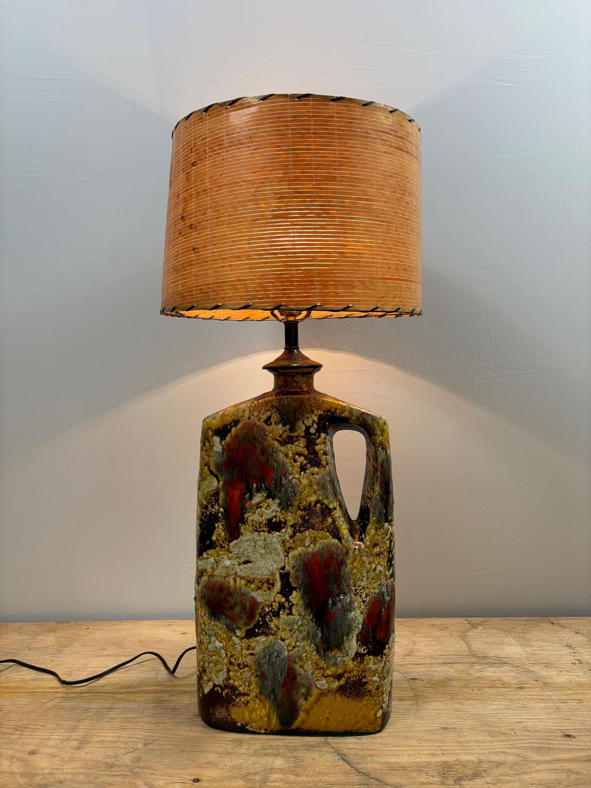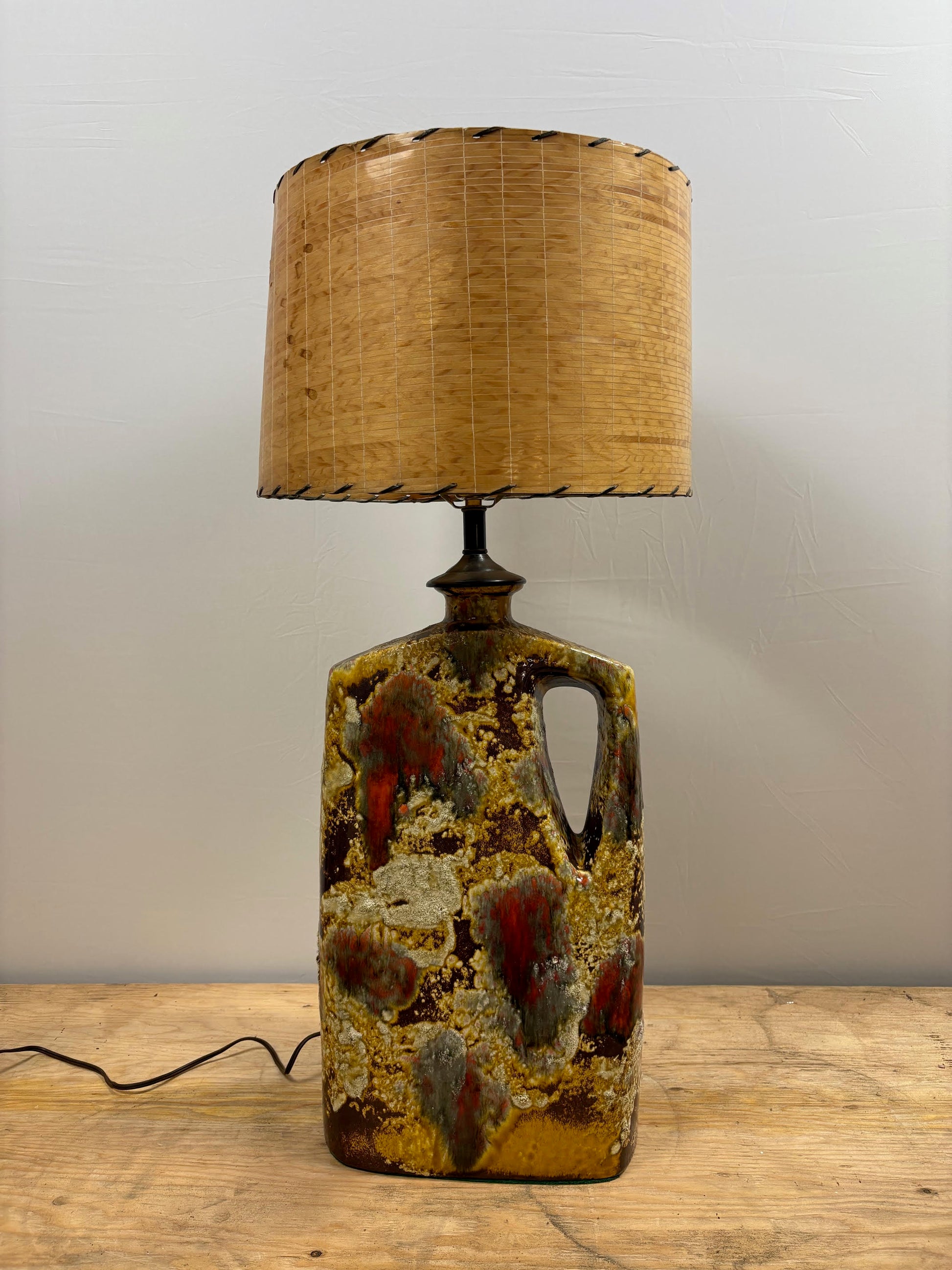 Red gold and brown porcelaine jug with handle and wood veneer shade