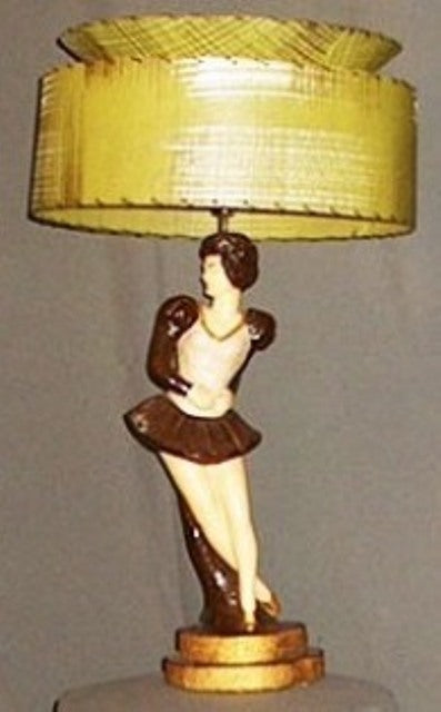 Stitched yellow shade with porcelaine femail ballet dancer with brown tutu