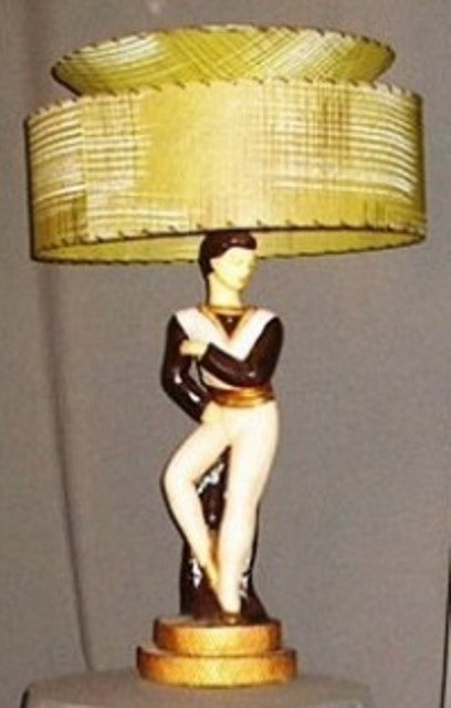 Table lamp Chalkware Men Ballet Dancer with dble green fiberglass shade with swirl