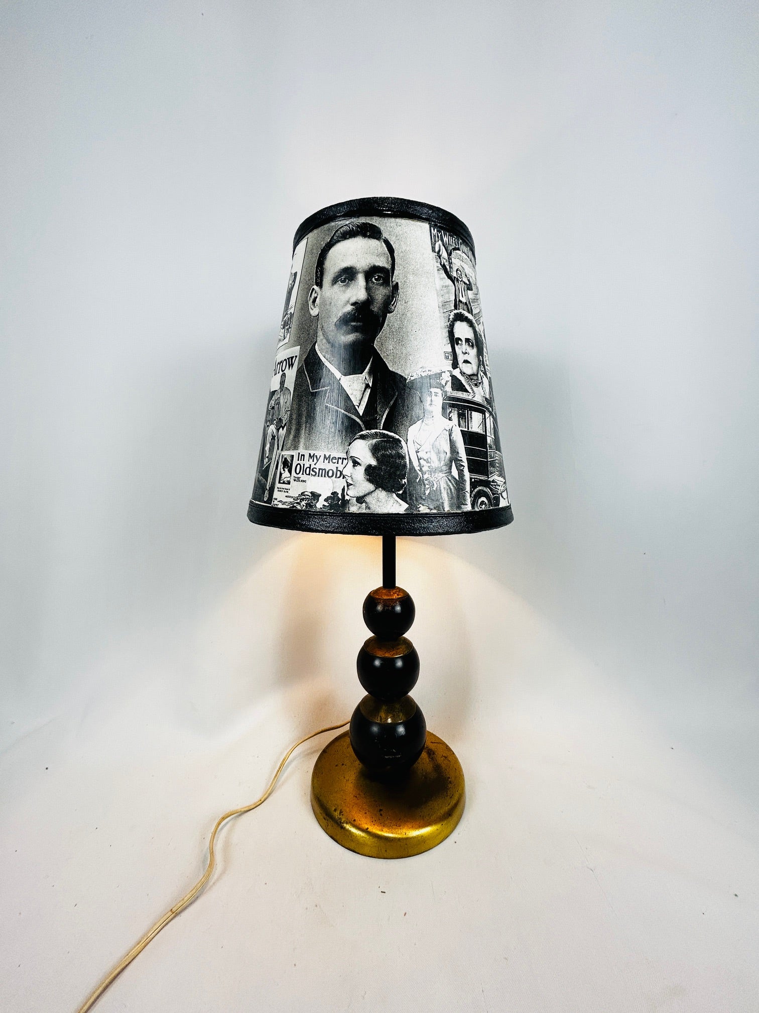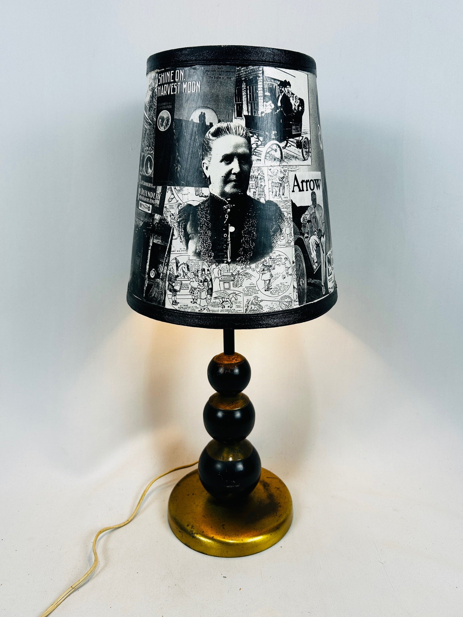 Table lamp Brass base with 3 black ball and shade
