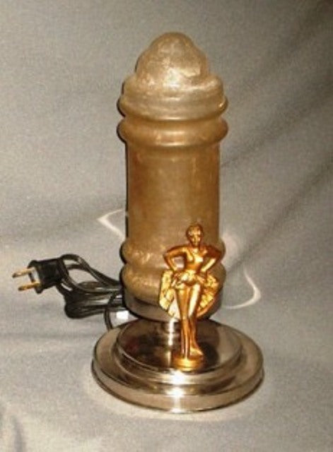Vintage Art Deco Table lamp Nickel finish with Gold Lady figurine and Frosted Bullet glass shade