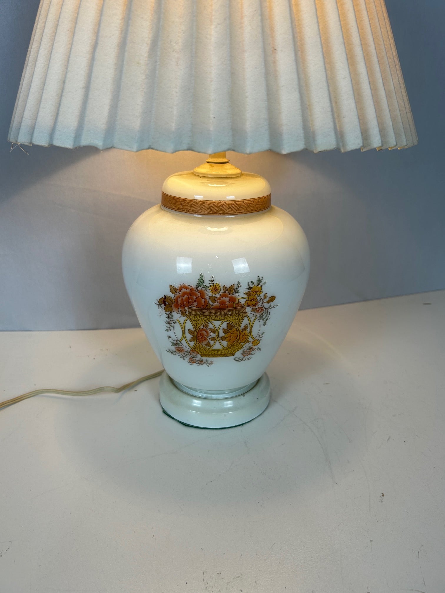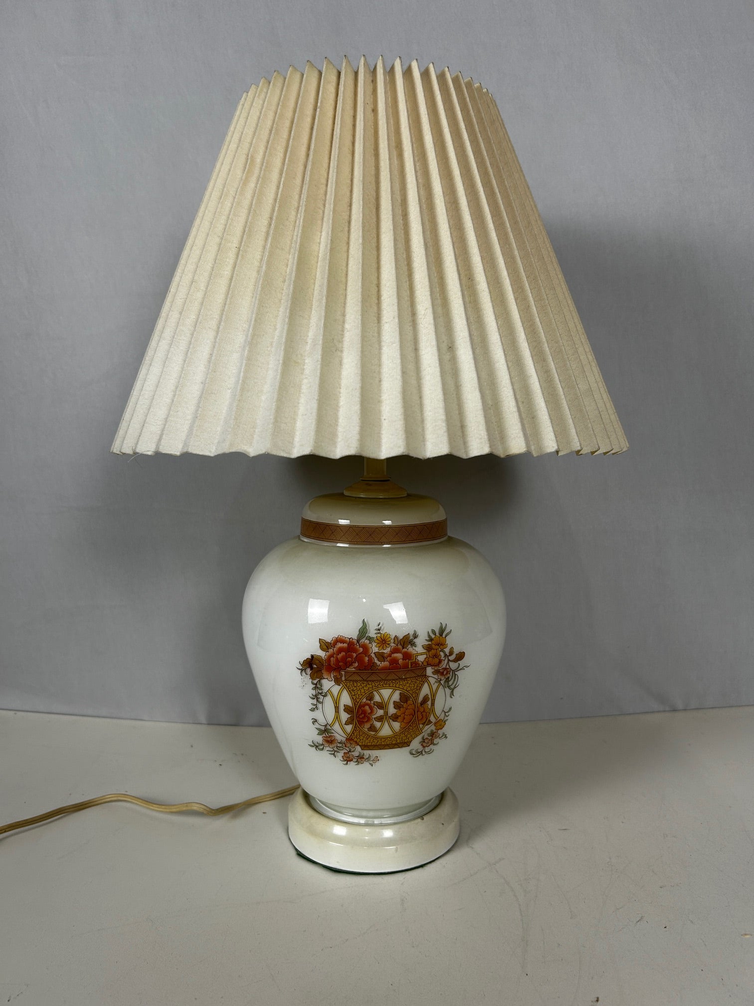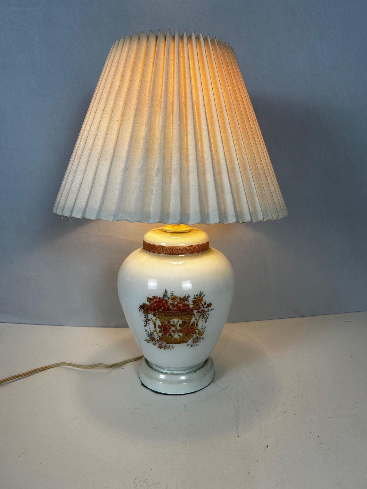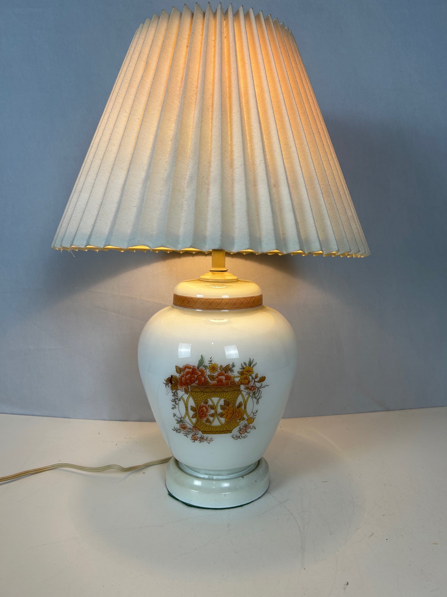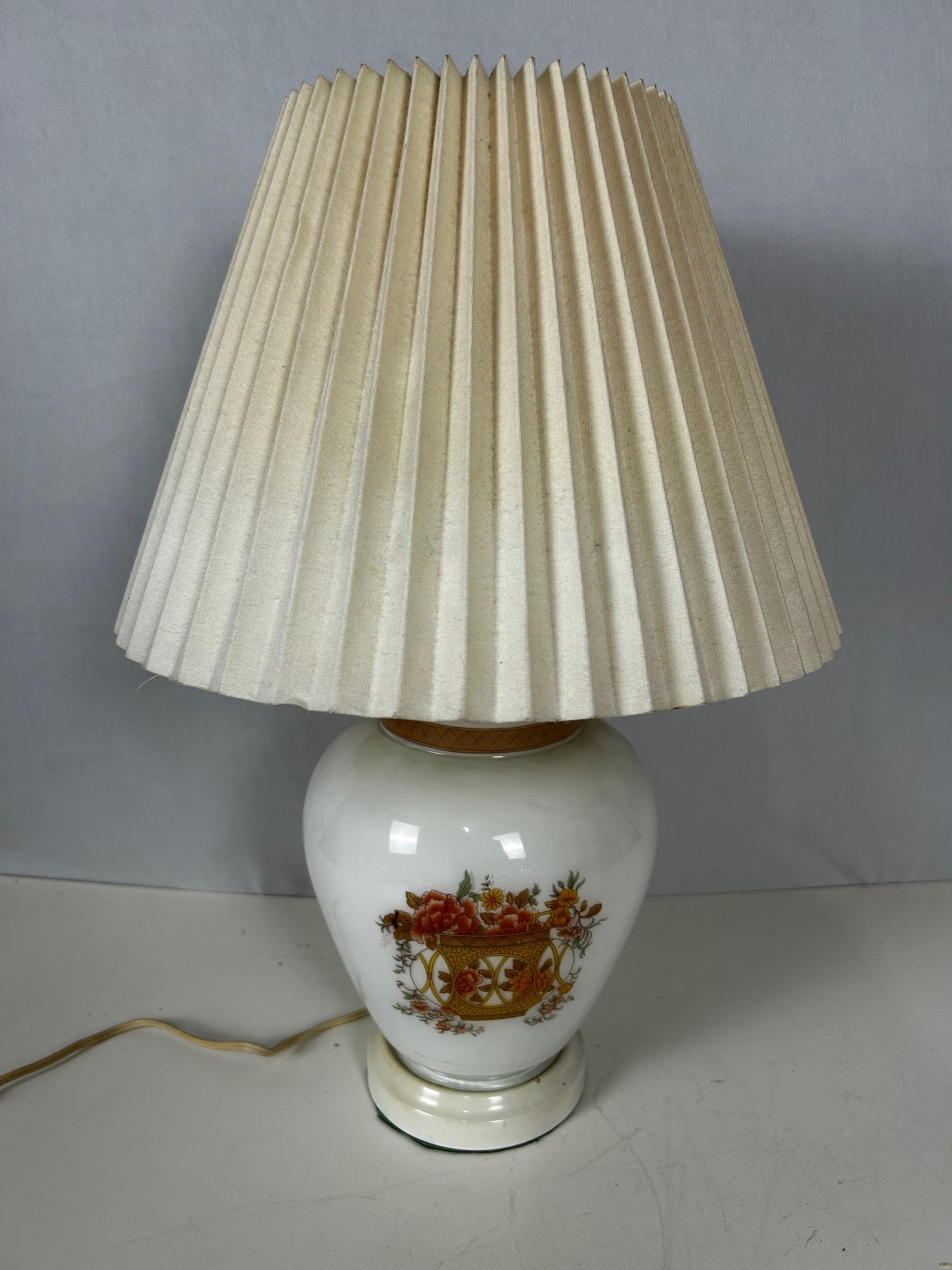 Porcelain vase with white painted flower basket