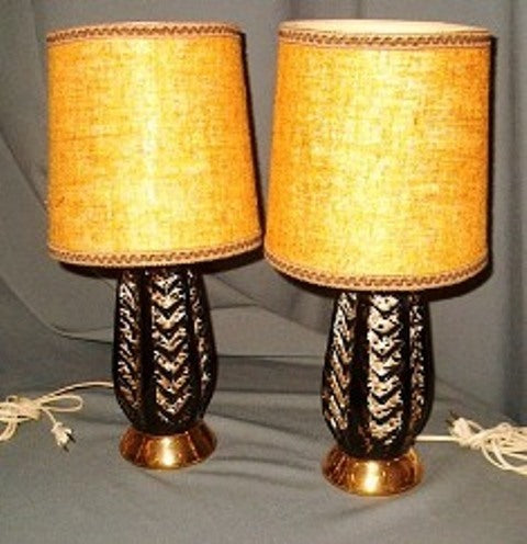 Table lamp Glaze ceramic with gold accents and with burlap shade
