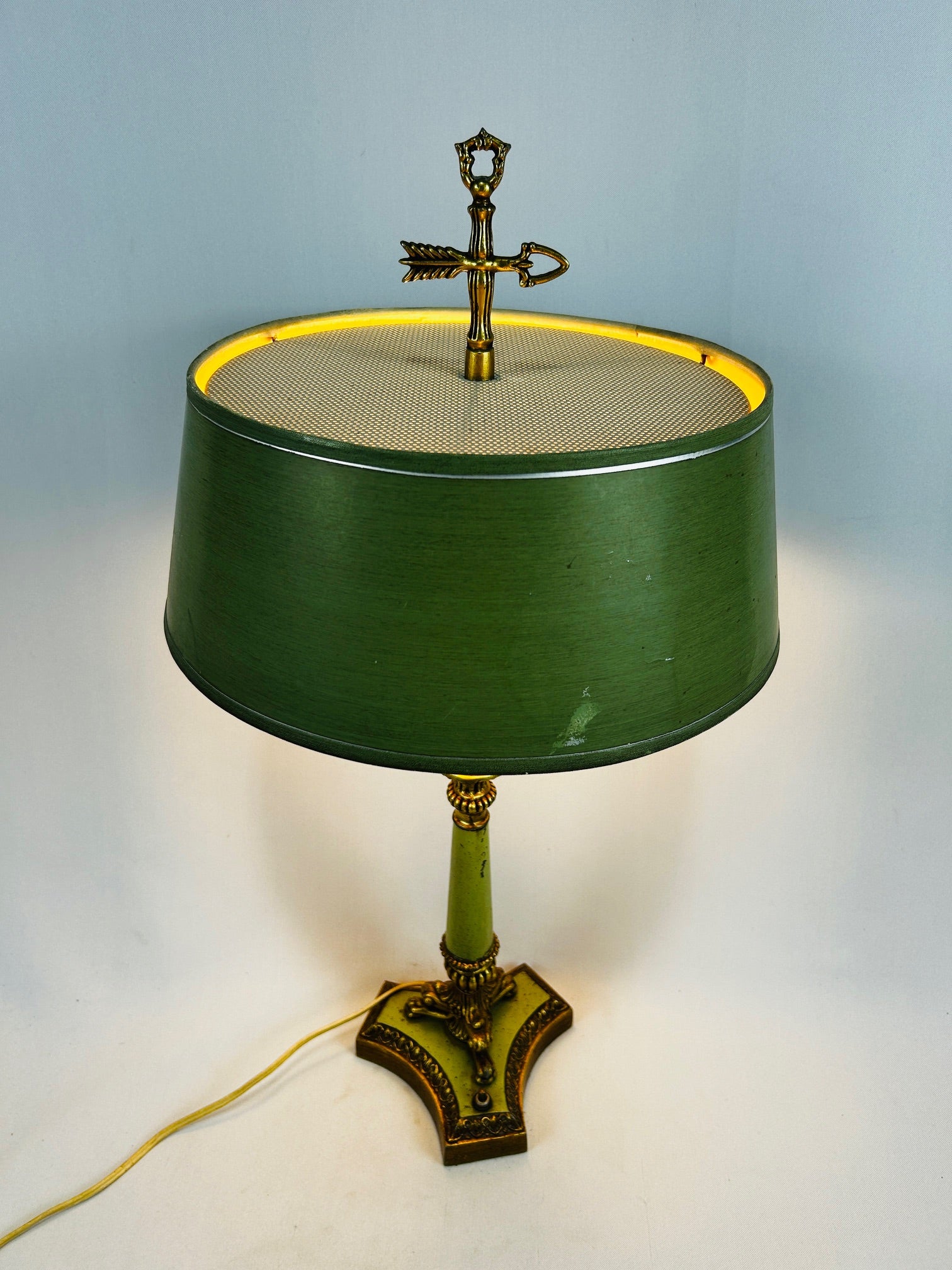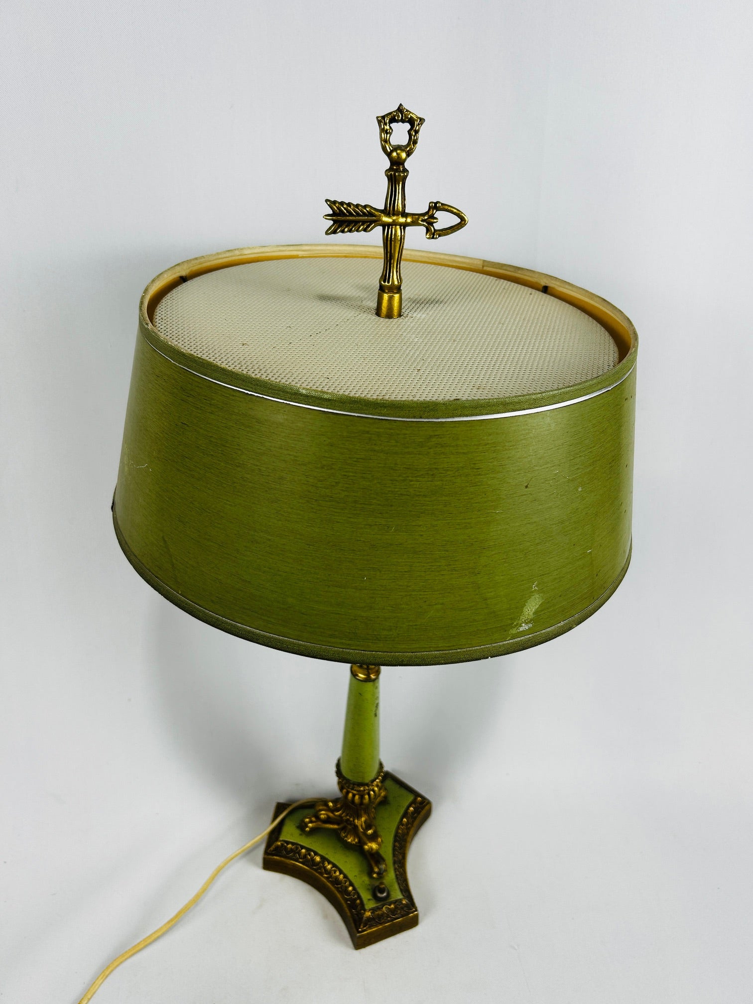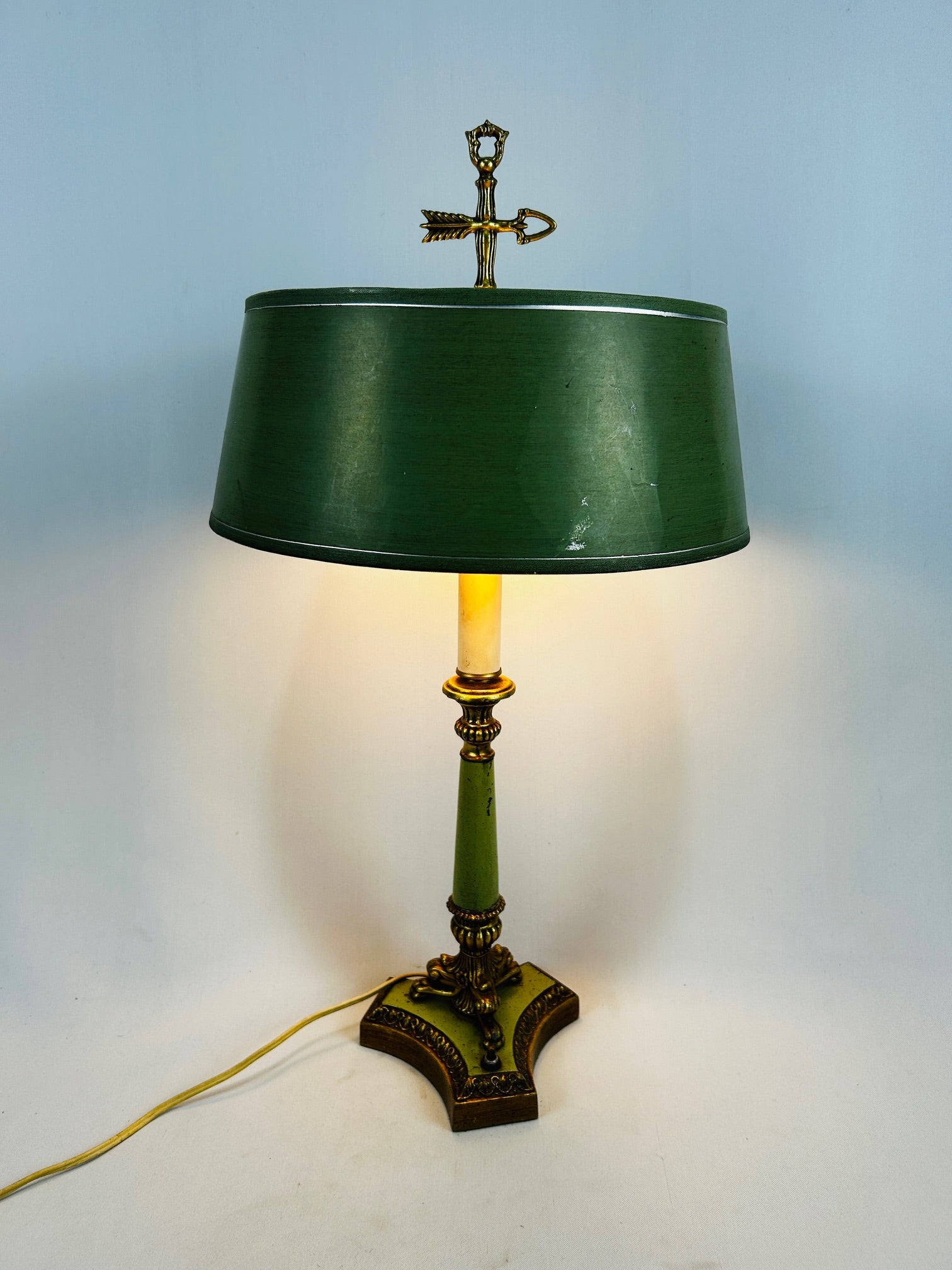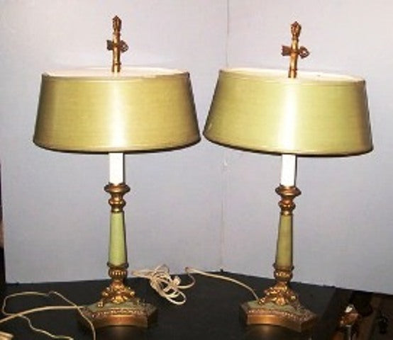 Table lamp vintage French gold base with lime green accents and with lime green shade with Finial to match
