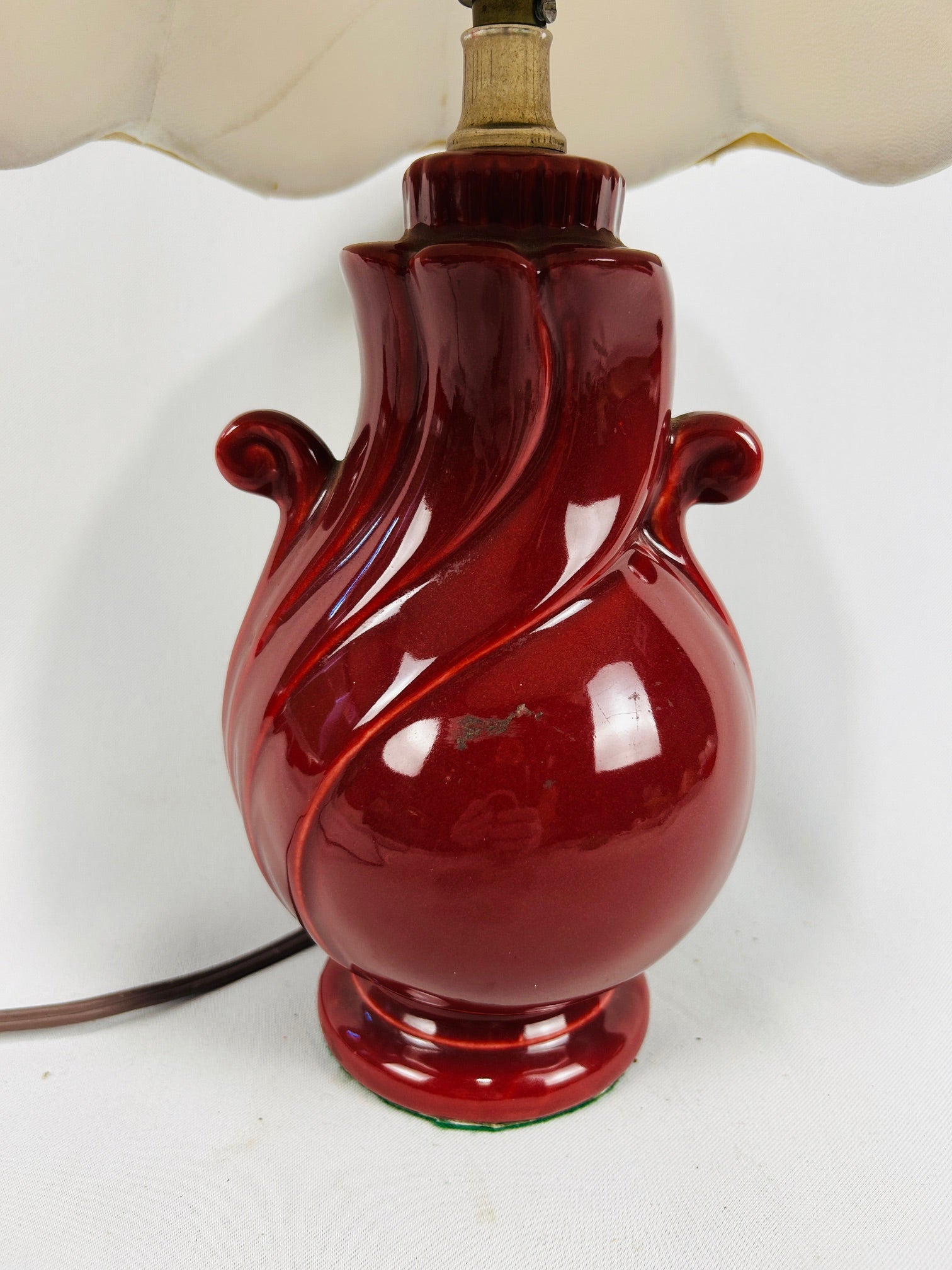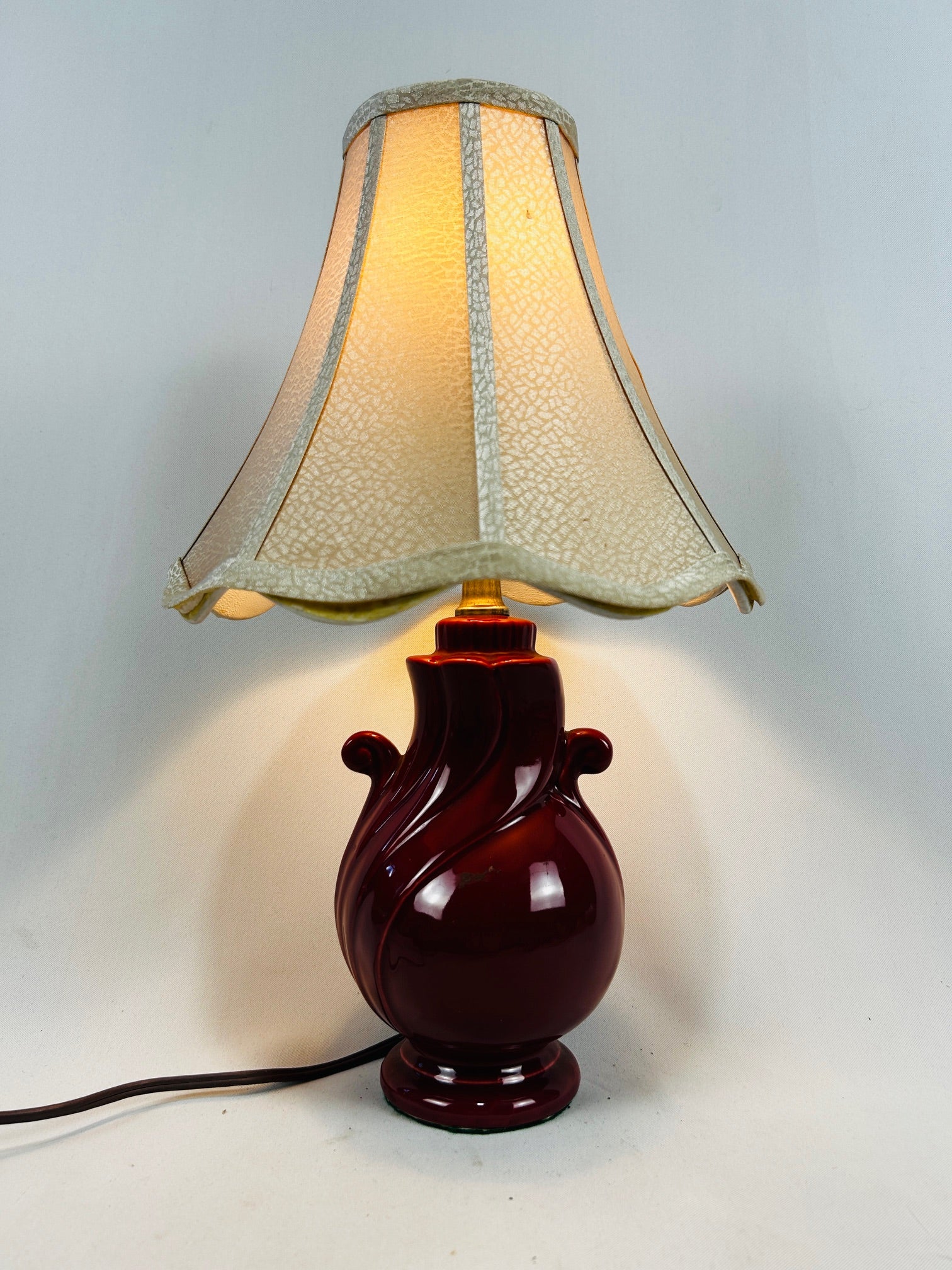 Table lamp Burgundy Ceramic with Linen shade