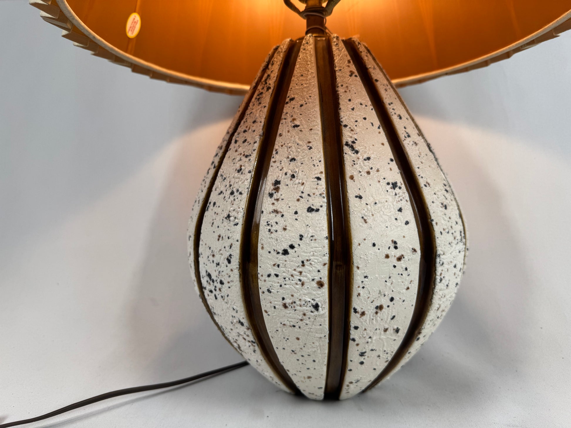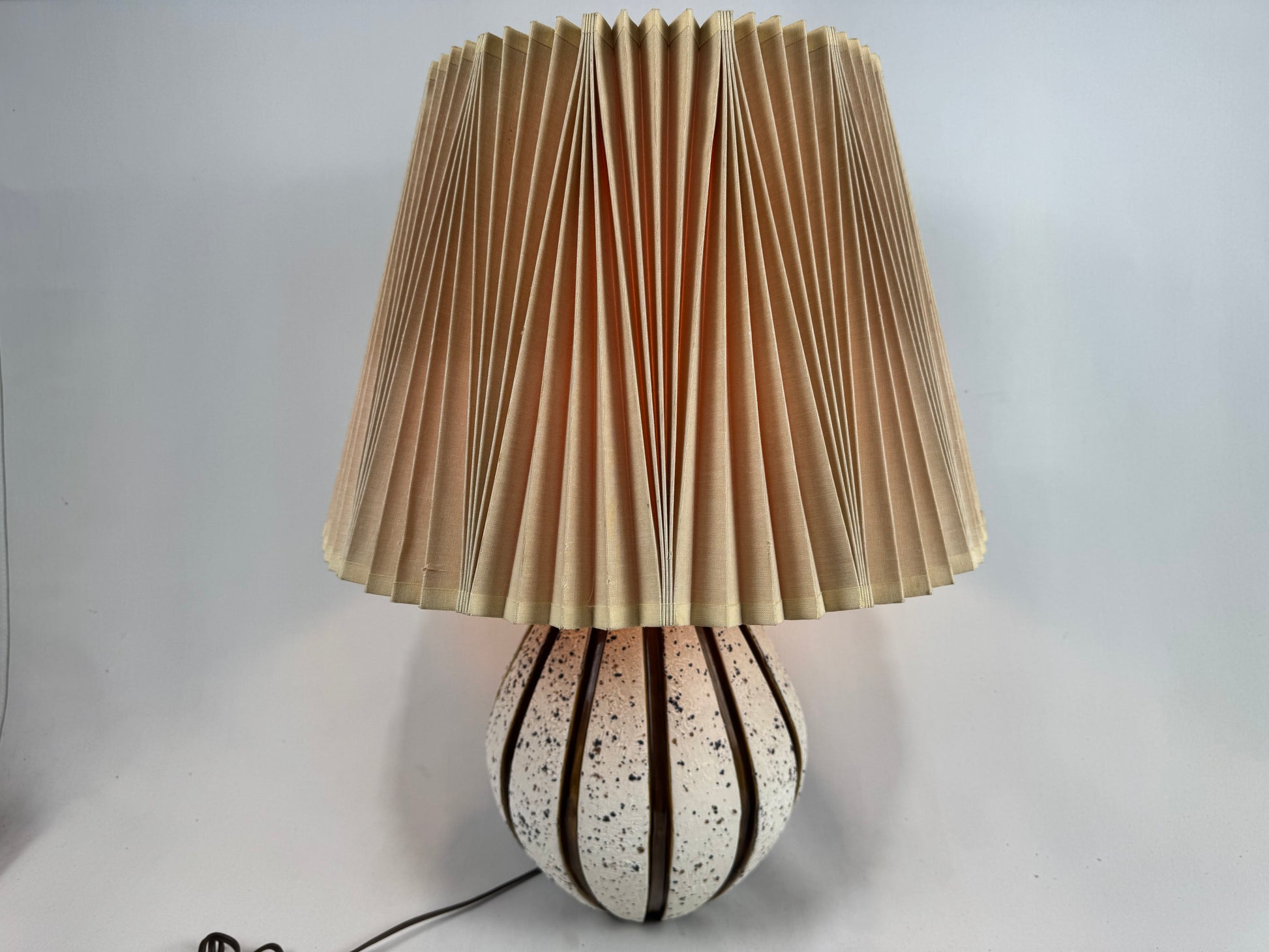 MCM Ceramic Table Lamp with Pinstripe Textured Accents.