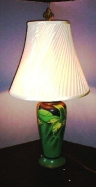 Vintage Table lamp Art Deco with hand painted Lilies and with inverted pleated shade and finial to match