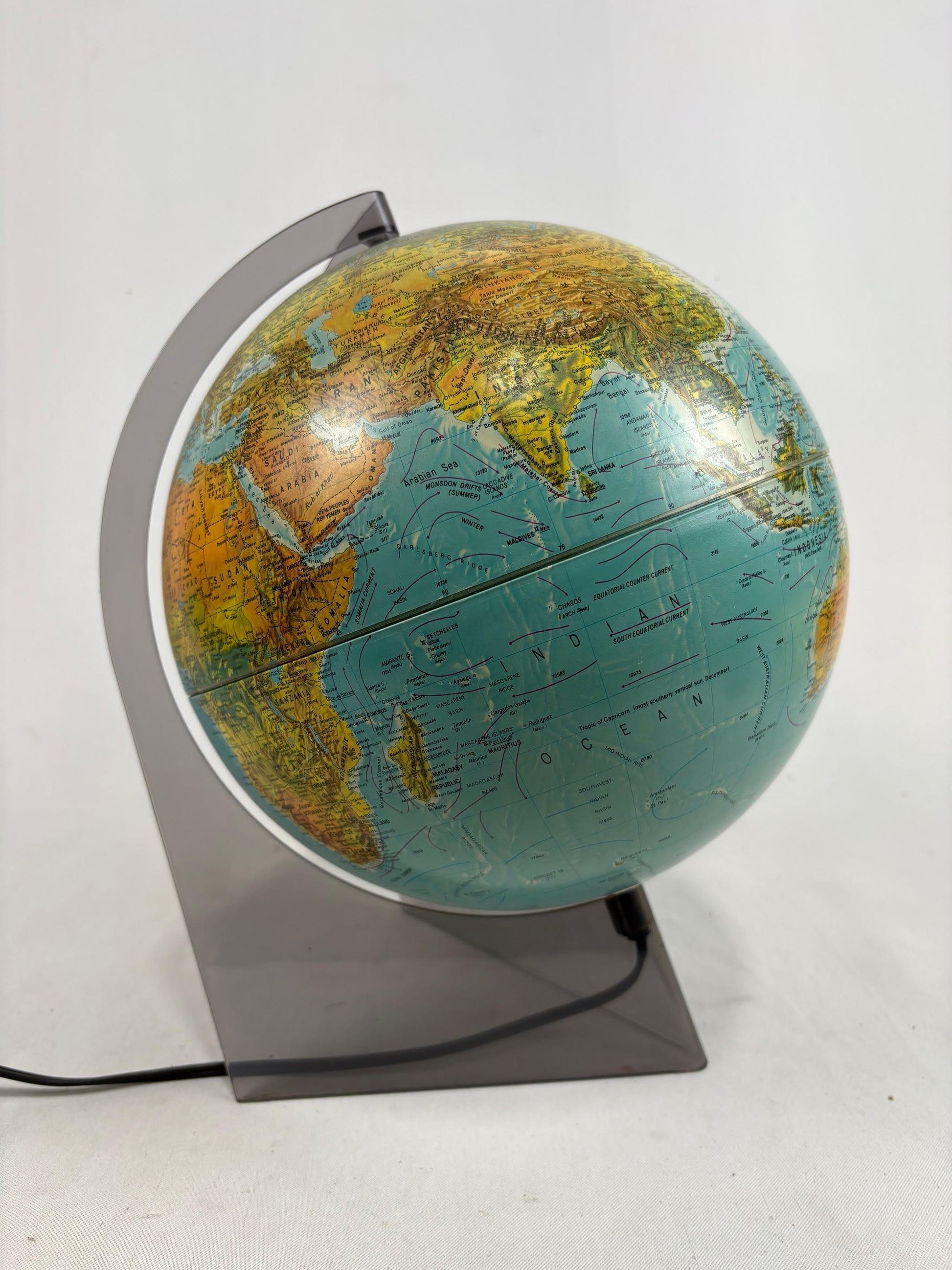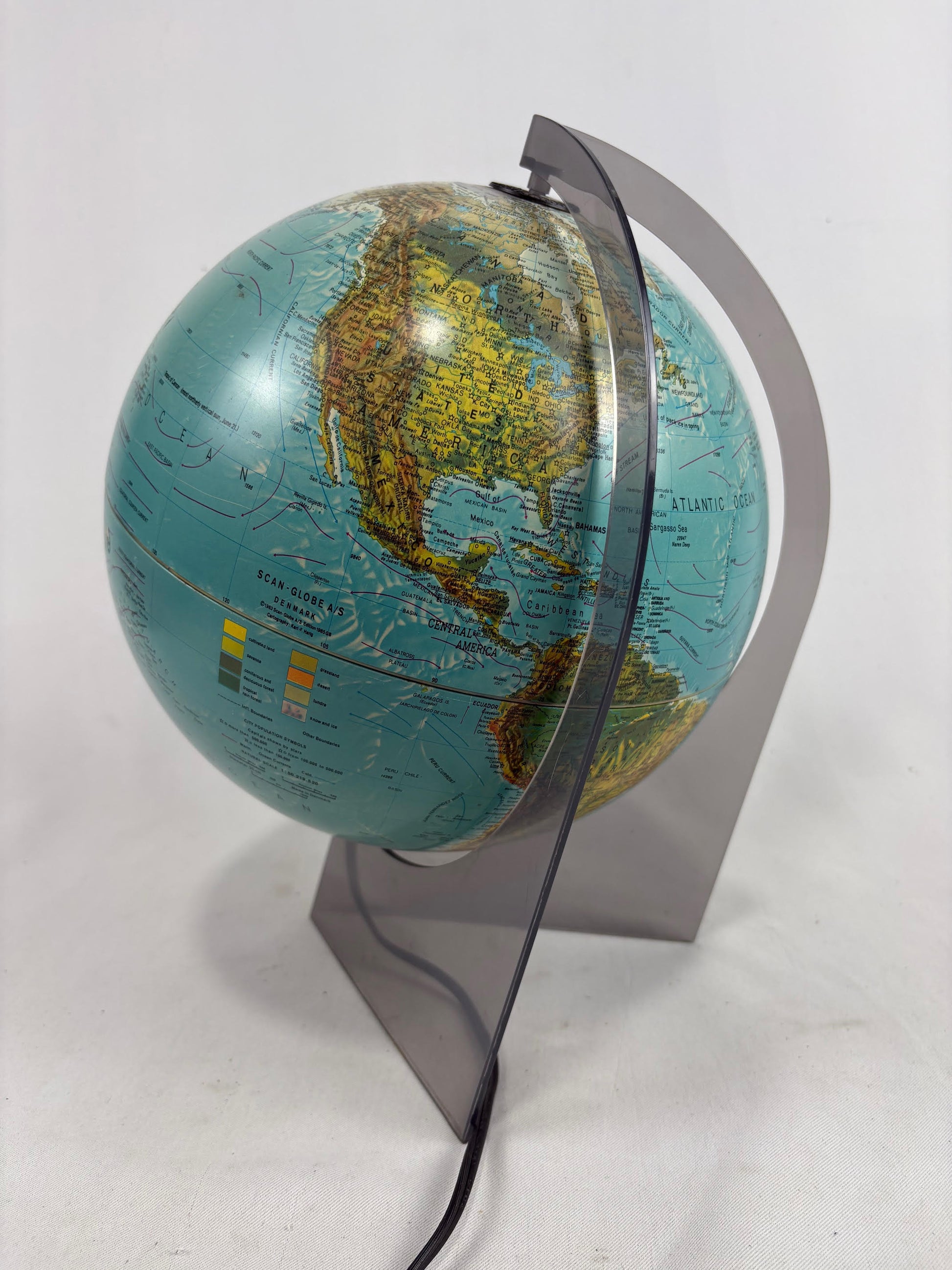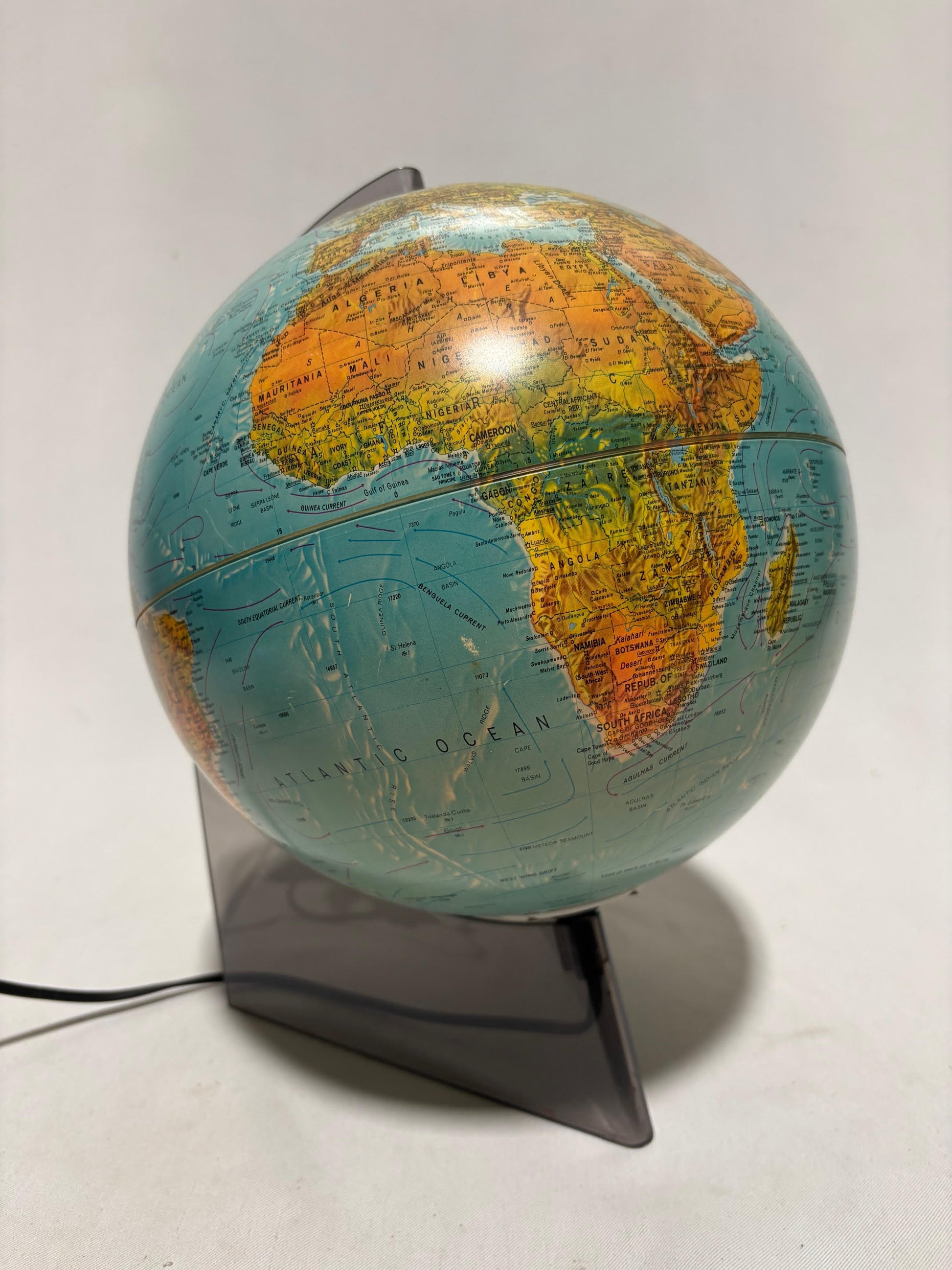 Vintage Light Up World Globe on a Tinted Acrylic Stand
